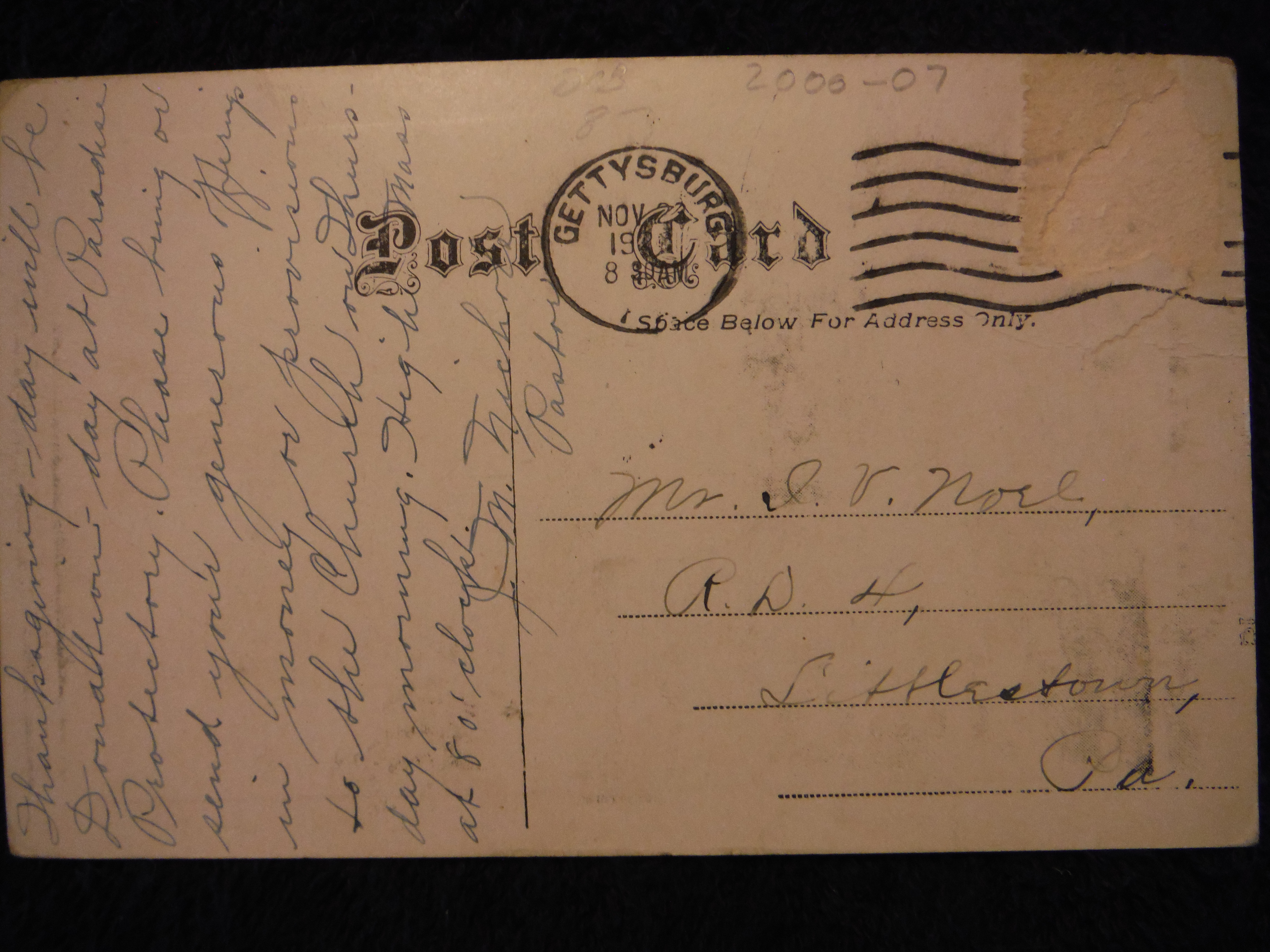 Reverse: Gettysburg postmark. Request for money, provisions, etc. Signed; J. M. Nichols, pastor (of St. Joseph's Church in Bonneauville).