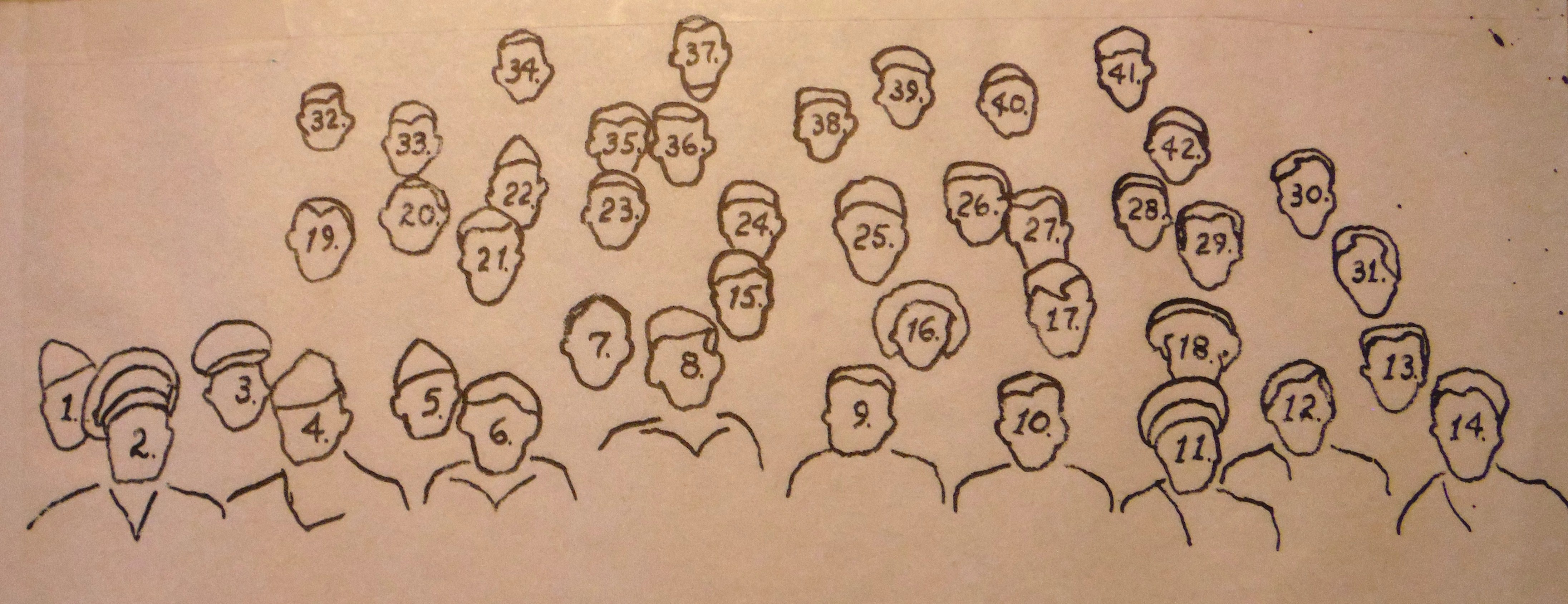 This photograph was taken in front of St. Joseph's Church in Bonneauville, PA about 1945. The photo includes most of the men and women of the town who served in WWII. Theron Little died during combat. Joseph Weaver died overseas as a result of an accident.