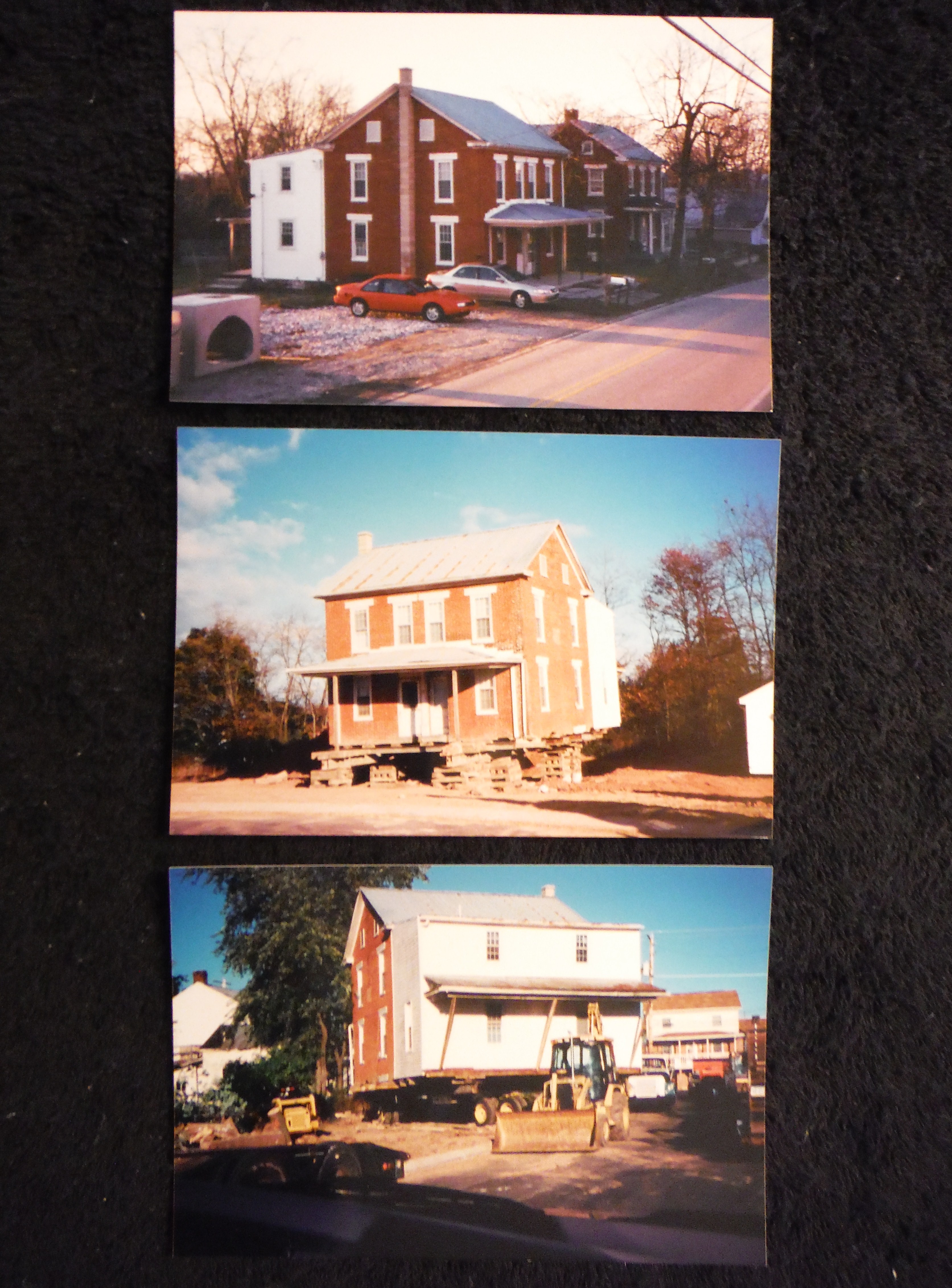 During one of these early transitions from private to public school the old convent was re-sold for use as a private residence. In 2001 the building was raised up off of its foundation and moved about one block west. The relocation made way for the Jessica Street intersection with Maple Street and a new housing development. These three shots capture the process of relocating a large building.