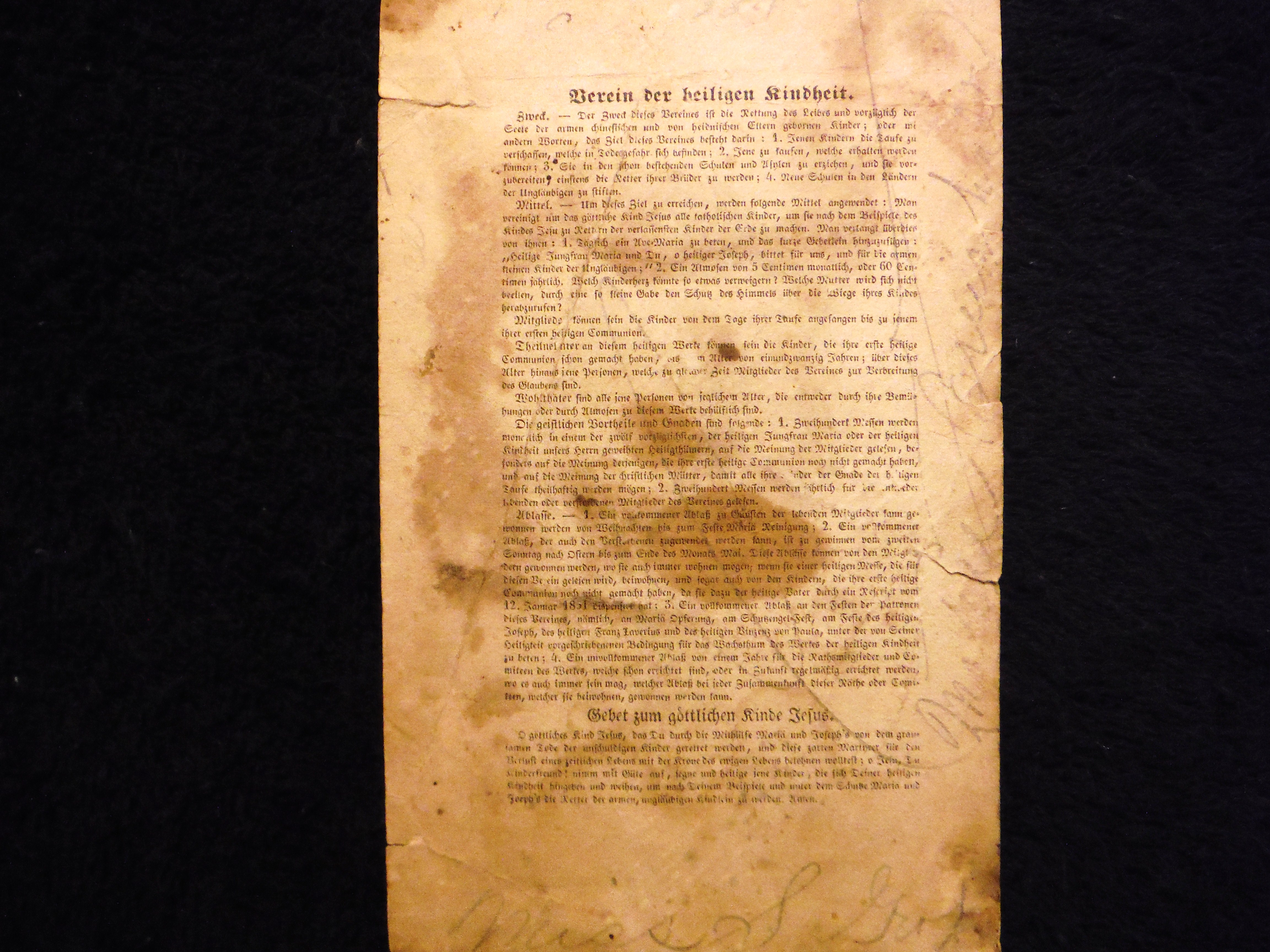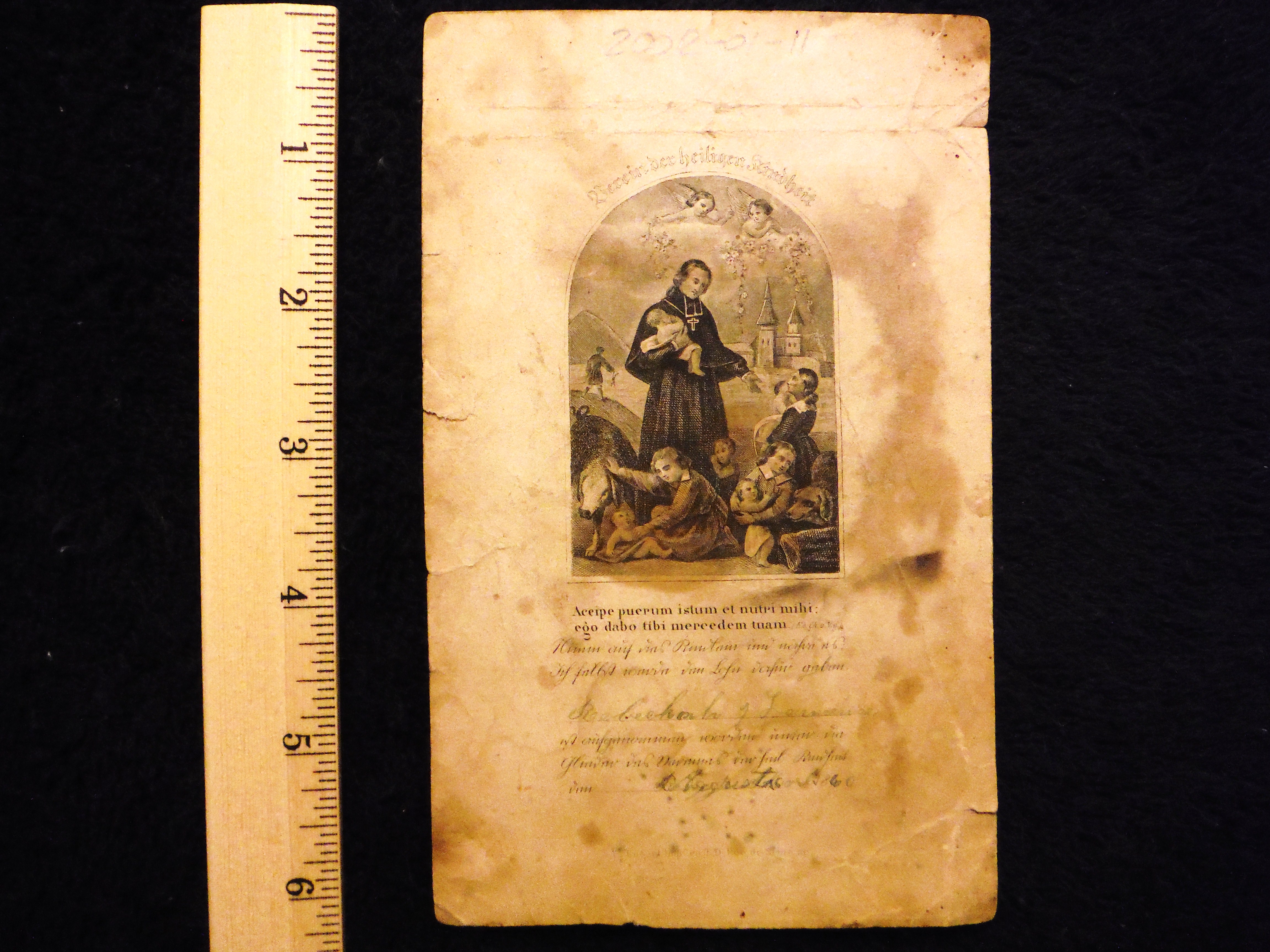 Prayer Card; Written in Latin. Penned; Rebecca Laurence.