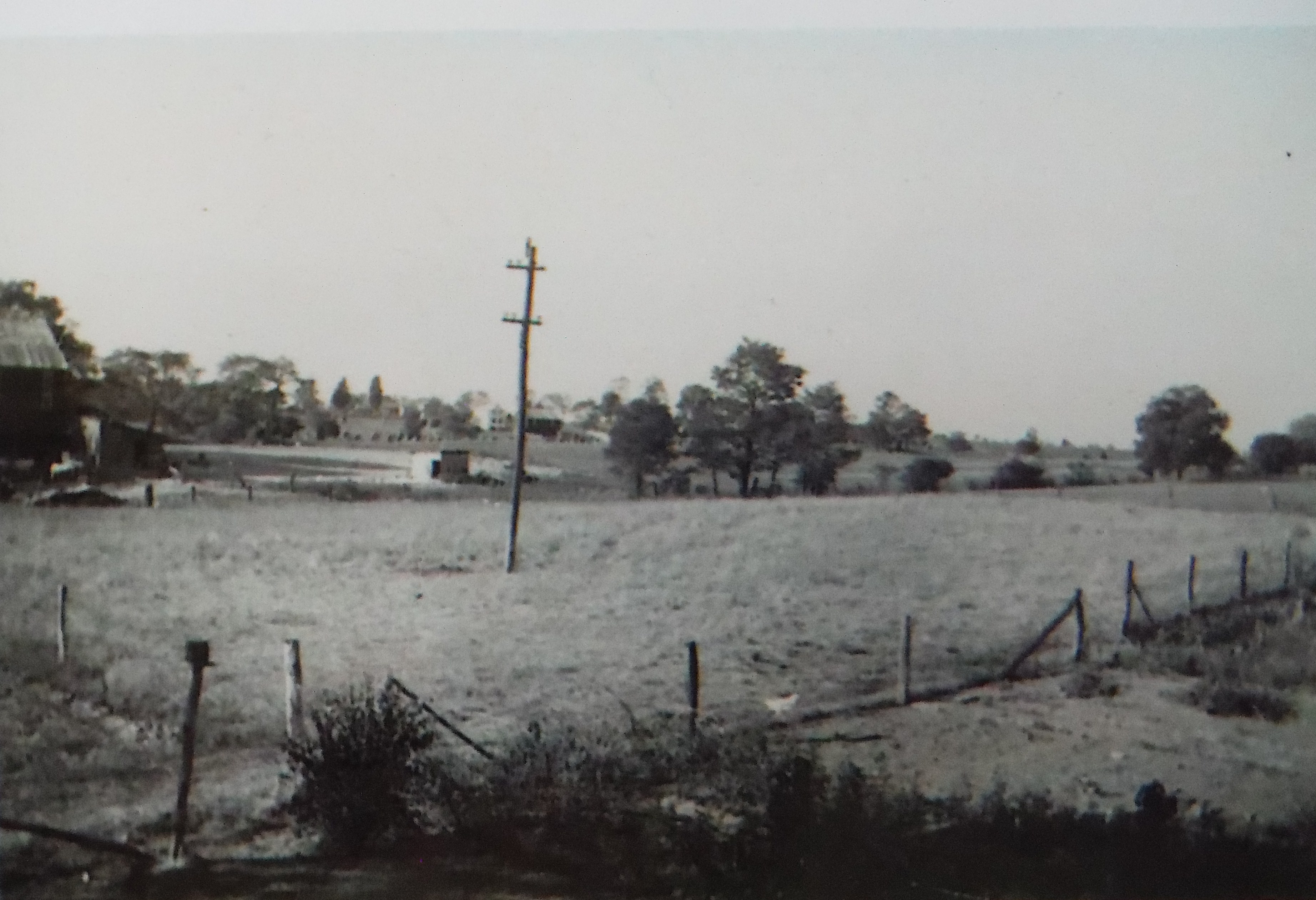 The garden plot and the field in the foreground were part of the 2 W. Hanover St. property. Two houses now occupy the site. One is that of Roger Weaver. The other, a small brick rancher, was built in the 1960's from a one-room schoolhouse torn down in the county. The barn in the far background at left stood where Brother's Pizza is now located. The trees at center are fencerow shagbark hickories that supplied townsfolk with hickory nuts for the better part of a century. They border the Ambrose and Bertha Myers Farm.
