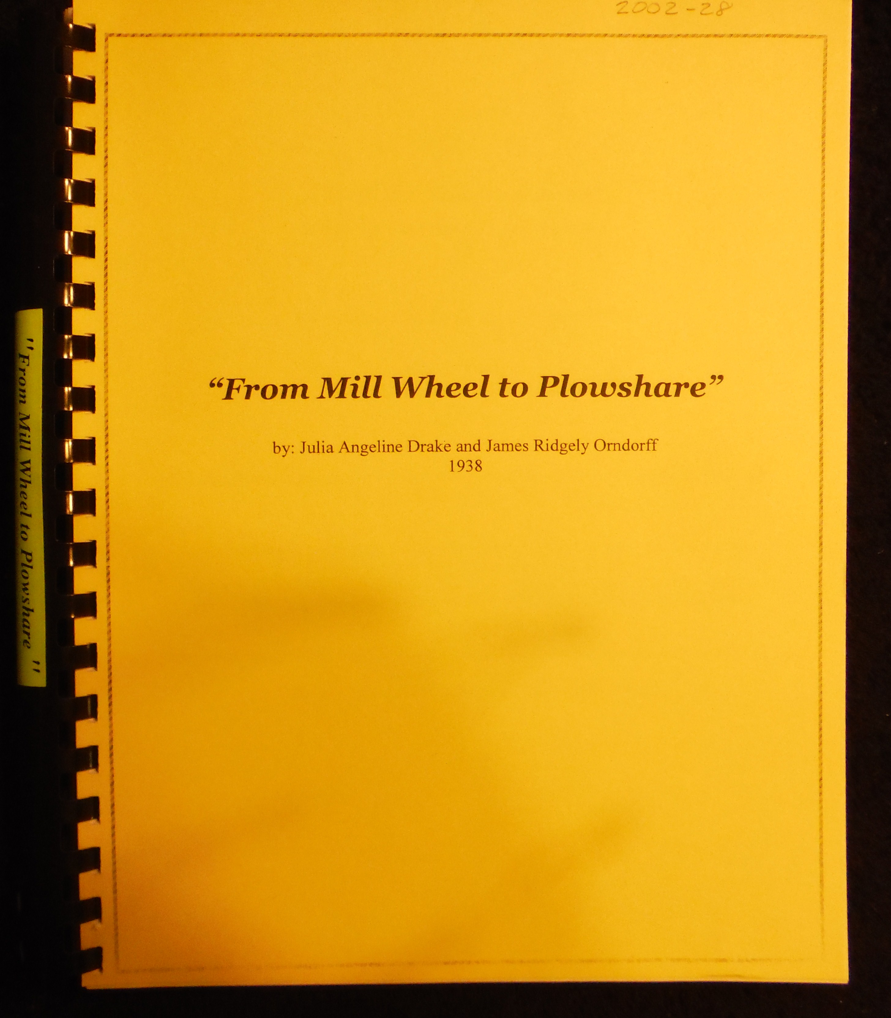 Julia Ann Drake (Professor of History, Wood Junior College) and James Ridgely Orndorff co-authored this book in 1938. Pennsylvania State Library, Harrisburg, PA Catalogue notes: "The story of the contributions of Christian Orndorff family to the social and industrial history of the United States." Photographs are illegible in this book copy. They are clear in the microfilm version of the book which can be found at the Pennsylvania State Library, Harrisburg, PA.