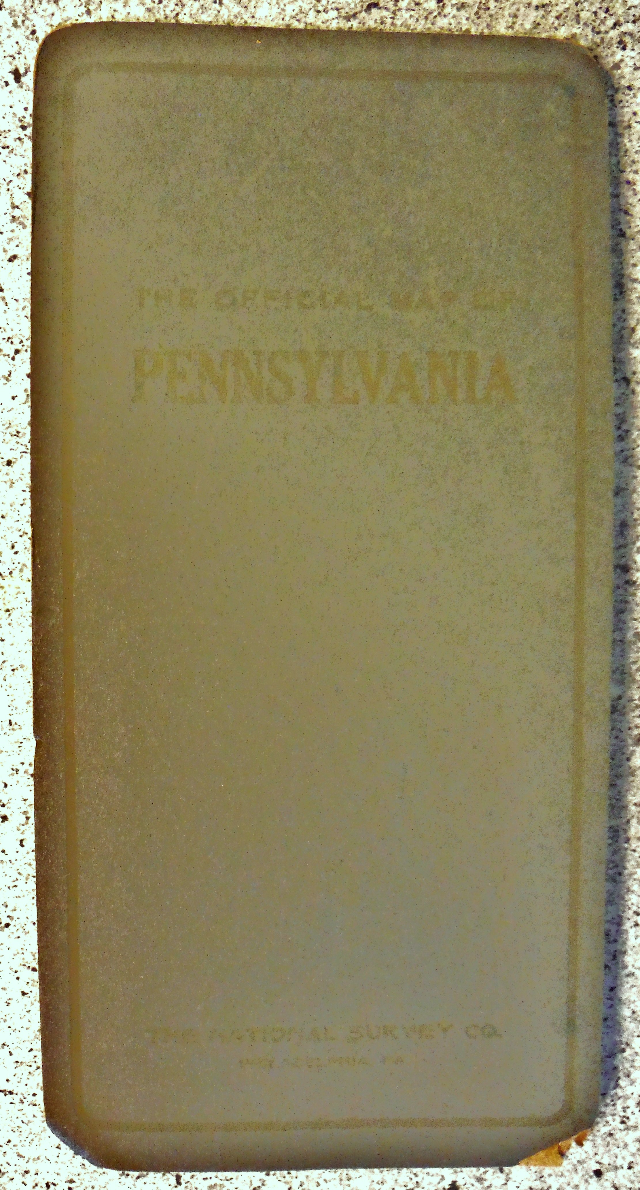 The National Survey Co., Philadelphia, PA. Map undated; This folded, hardback cover map depicts routes, railway stations, villages and waterways for all of Pennsylvania. Bonneauville is indicated but with no features other than RT. 116. The name is rendered nearly illegible by it's location on one of the map folds.