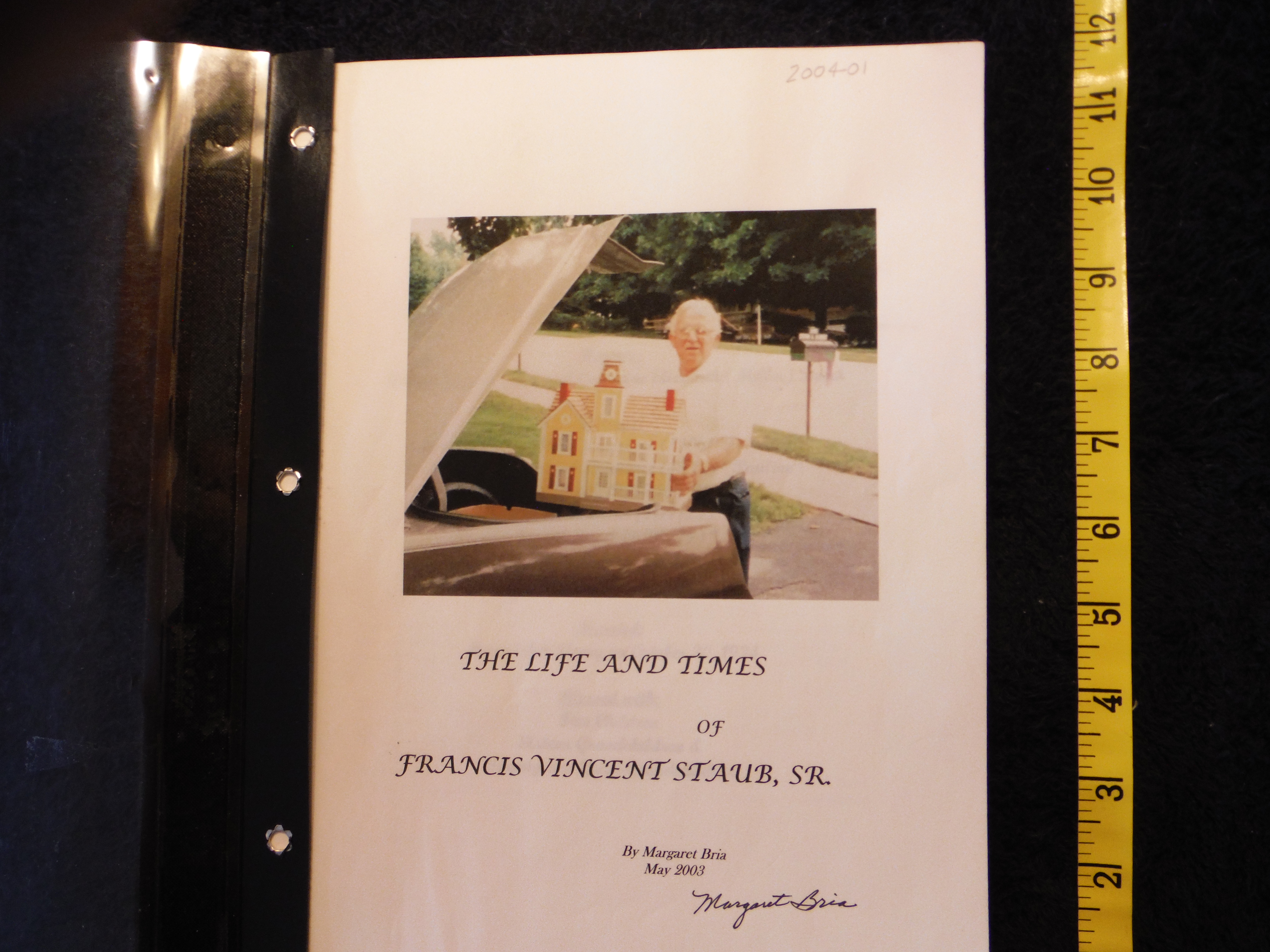 This book is a Vince Staub Biography. It is richly illustrated with 46 color and black and white photographs of the Staub family who lived on Maple Street in Bonneauville. The book was lovingly written by his daughter, Margaret Staub Bria, Sr. District Justice, Commonwealth of Pennsylvania, Hanover, PA.