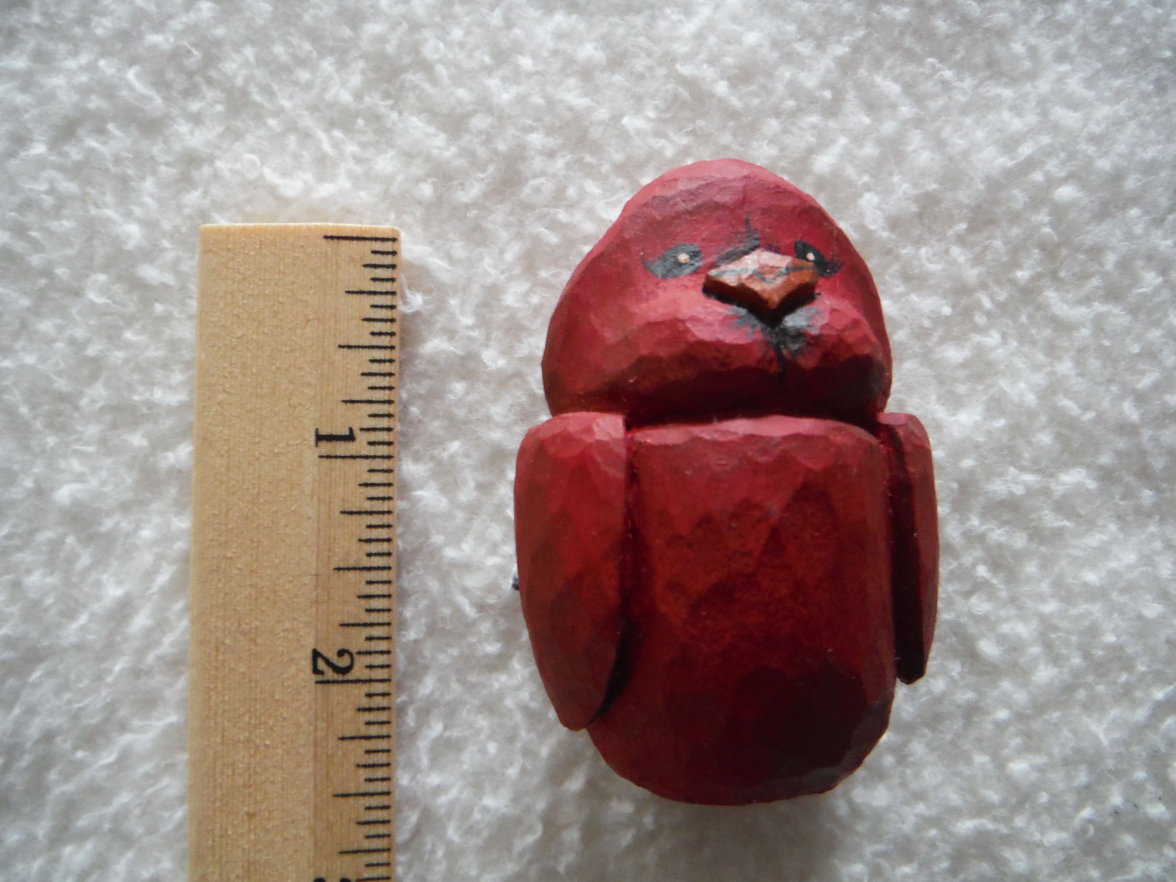 Wood Carving by Joyce Funk, wood carver. Geppettos Workshop, Locust St., Bonneauville, PA. Animated Cardinal, 2004.