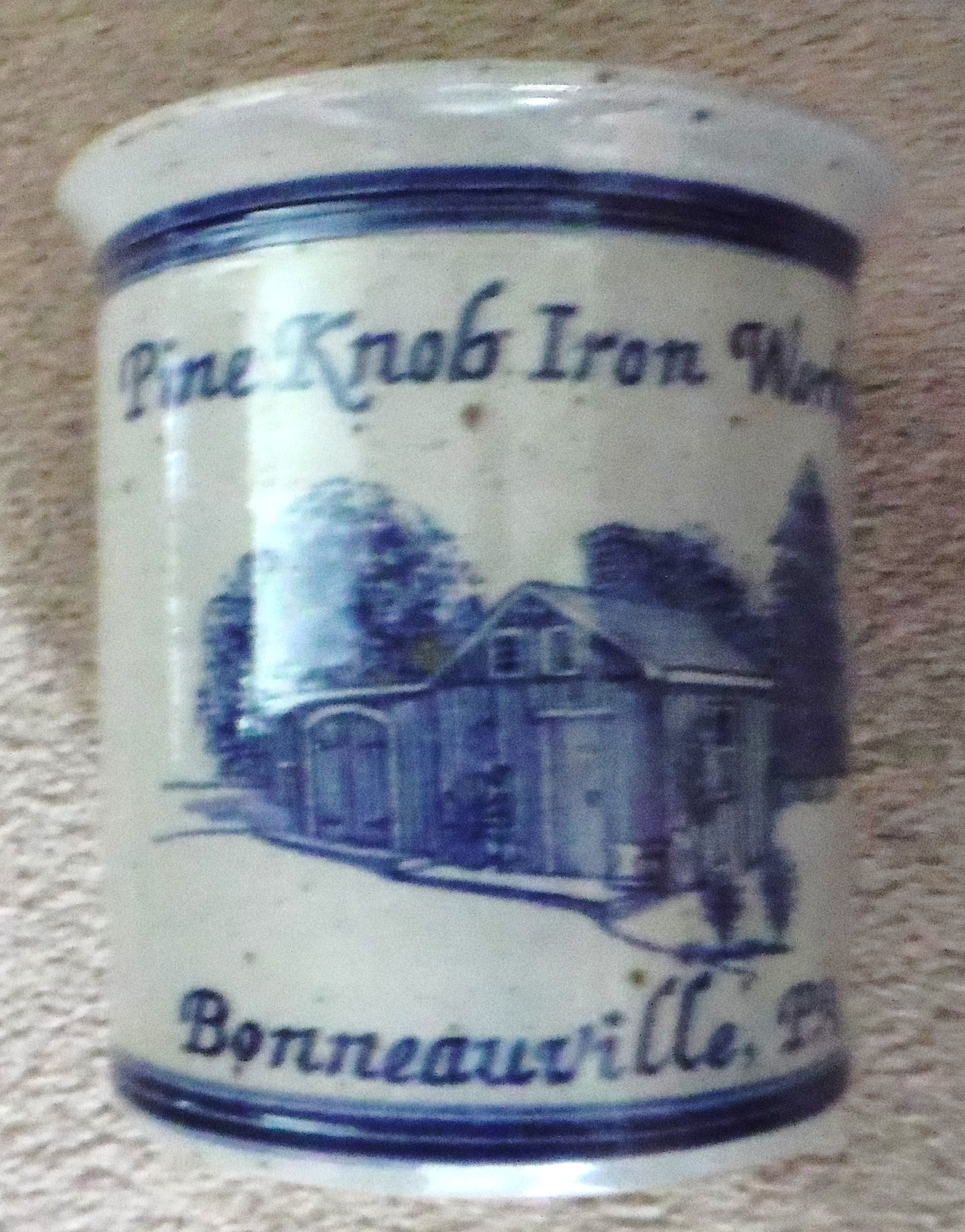 This cobalt decorated crock nicely depicts the Pine Knob Iron Works blacksmith shop at 4A Locust St in Bonneauville,