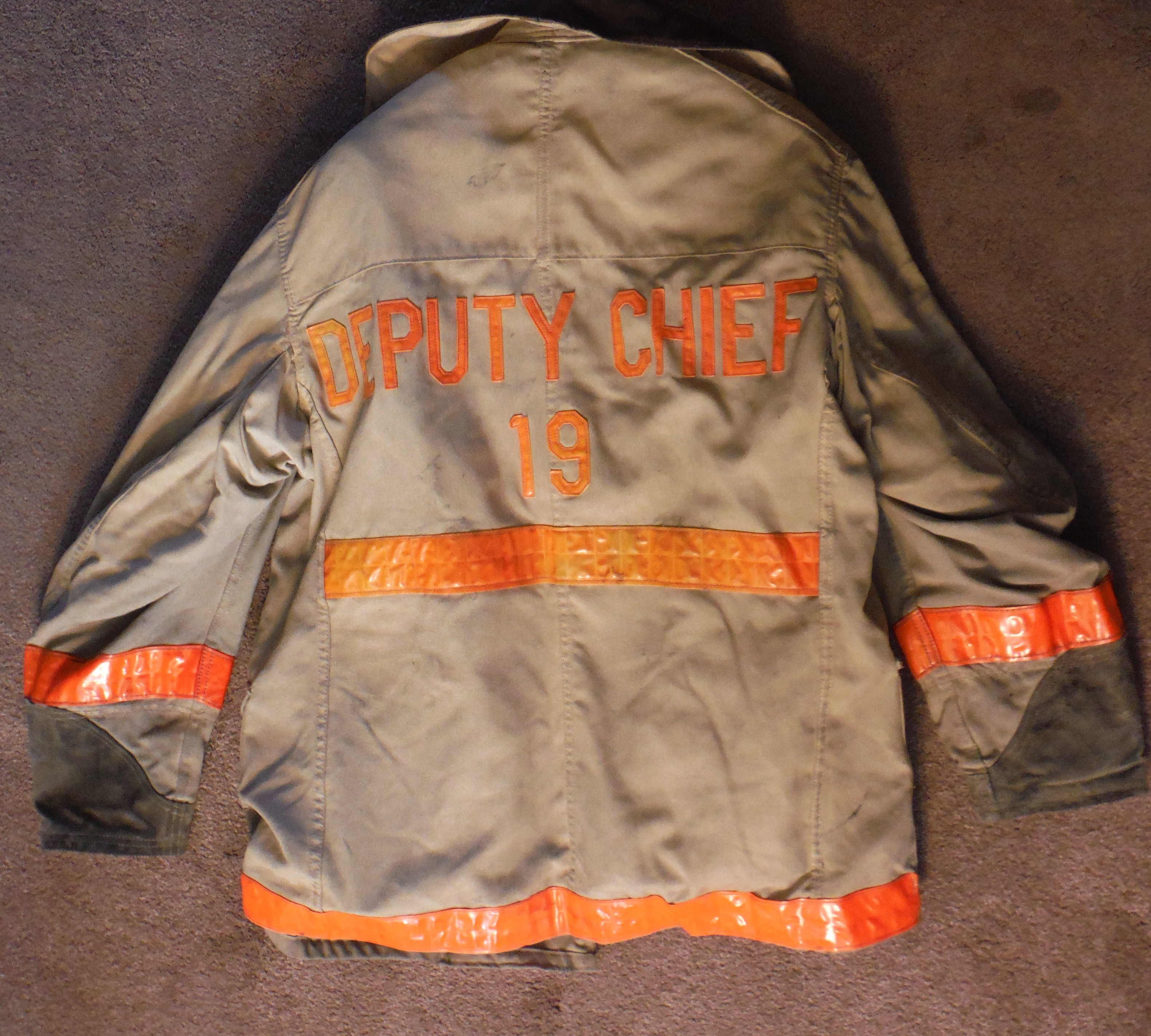 In 2006 the Bonneauville Fire Company was purging its obsolete equipment which had been replacd with new gear. Logic dictated that the old equipment should be sold as collectable items. By invitation of the Chambersburg Fire Co., generous volunteers of Bonneauville and many other fire companies rented flea market tables and commenced fund raising. It was from there that this coat was collected.