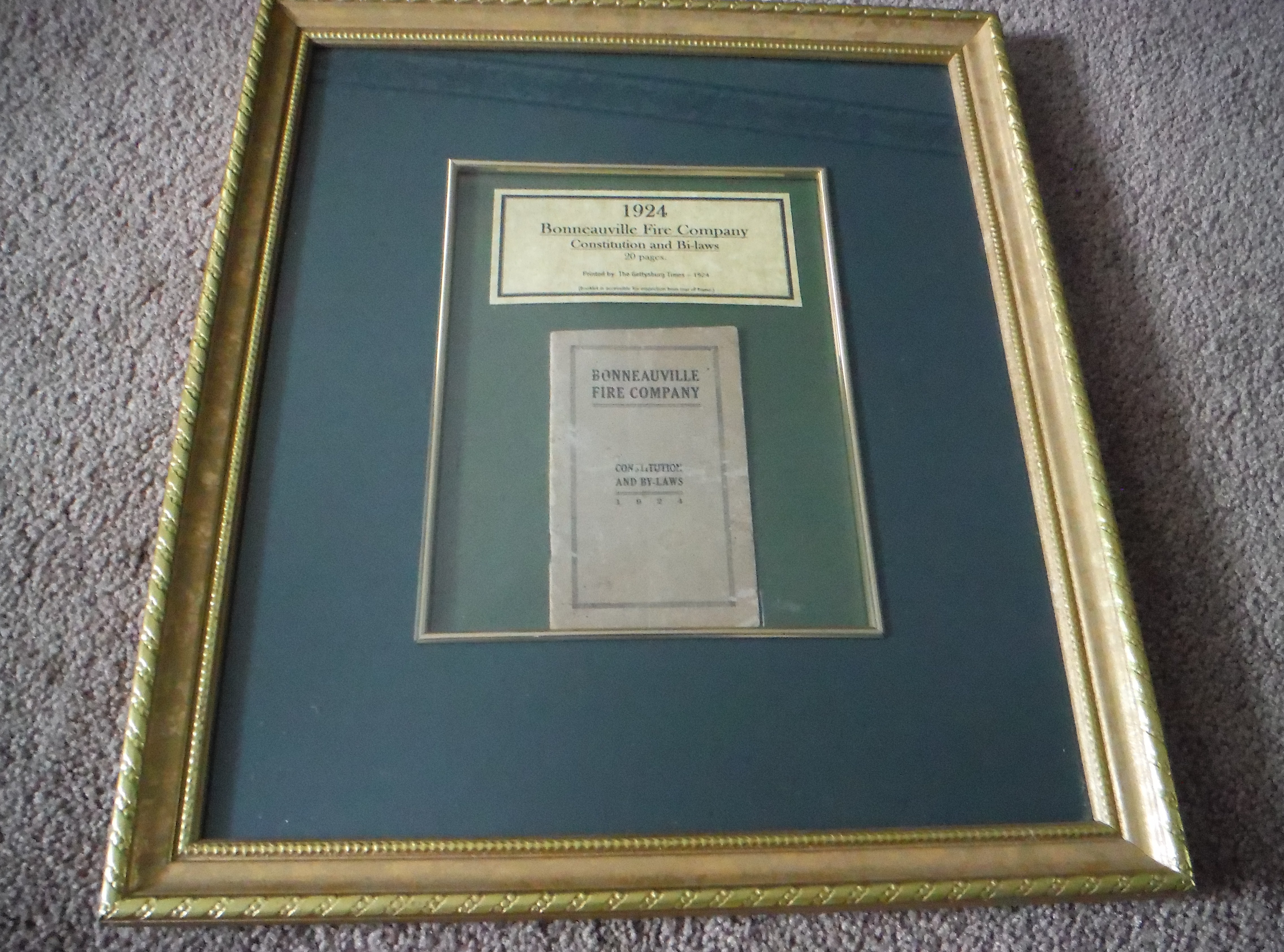 First issue Bonneauville Fire Company rule book. Printed by the Gettysburg Times. Framed.