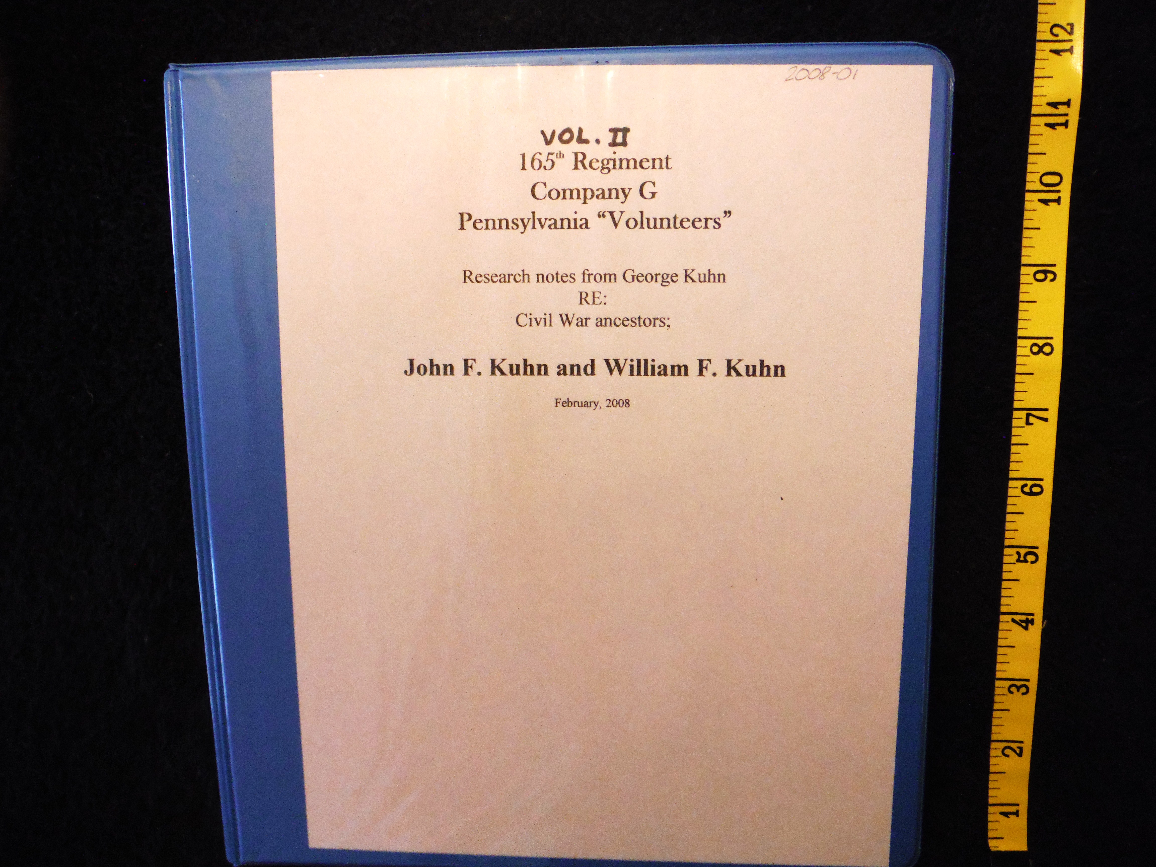 "165th Regiment, Company G, Pennsylvania Volunteers." Vol II. George Kuhn, Feb. 2008. Contains a partial copy of Sgt. Samuel Crist war diary, ( May 13 - May 12, 1863) and a copy of Quartermaster Sgt. L. Cunningham (Nov. 3, 1863 - July 31, 1863, war diary). Copies of detailed combat area maps at Suffolk, VA where most of Bonneauville's Civil War Veterans served, are included.
