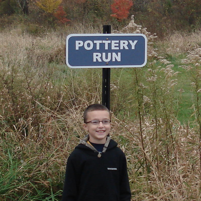 Chicken Run drains Bonneauville and flows into White Run about one mile west of the town. There is a small feeder stream that flows into Chicken Run on the western border of Bonneauville. Until 2008, the stream had no name. It was while searching for pottery shards from the famous Ditzler/Baecher kiln that young Eric Hemler thought that the waterway should be named. He chose "Pottery Run." This book is a compilation of steps, processes, forms, and communications required to officially name a natural feature. Included are kudos, newapaper articles and correspondence regarding the success of the venture. Five years after beginning the project, "Pottery Run" signs appeared along the Hunterstown Road North of Bonneauville.
