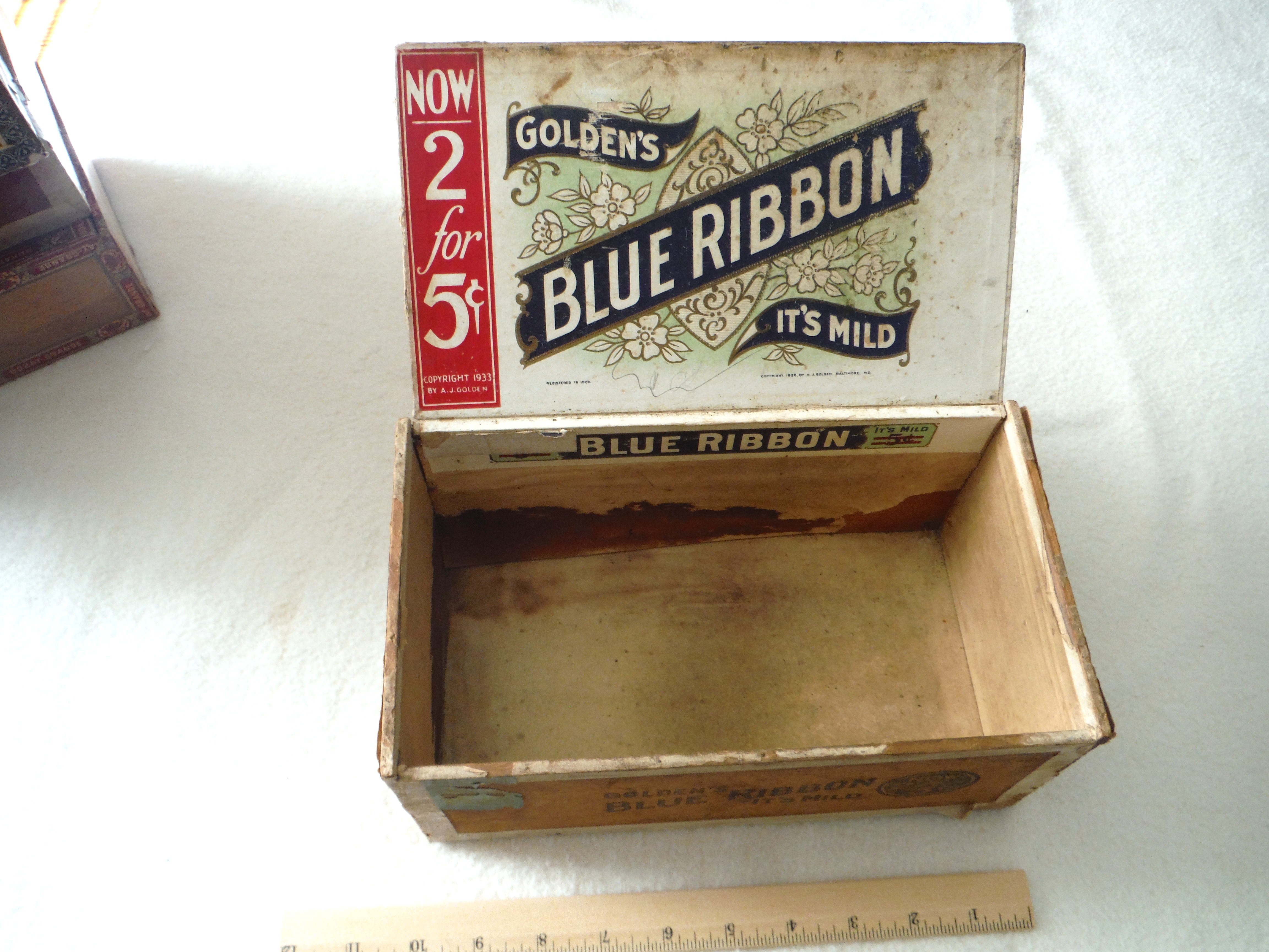 Oversize Golden's Blue Ribbon wood box. "Now two for 5 cents." (It was the time of the Great Depression.) Fact. 1485, 1st Pa Dist., 100.