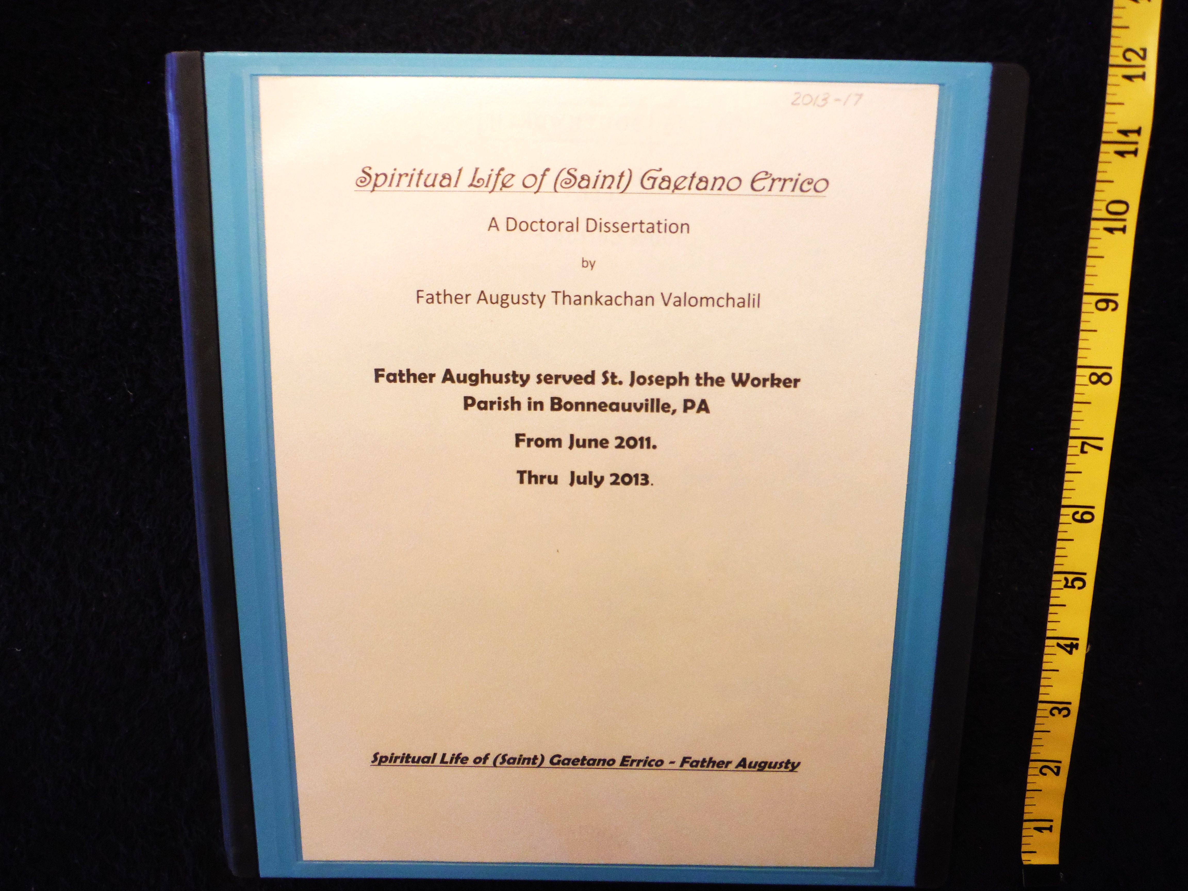 Father Augusty Thankachan Valomchalil served St. Joseph the Worker Parish in Bonneauville from June, 2011 to July, 2013. This book is his doctoral dissertation. In it he studies and describes Gaetano Errico; "Experiencing the merciful love of God and transmitting it to others."