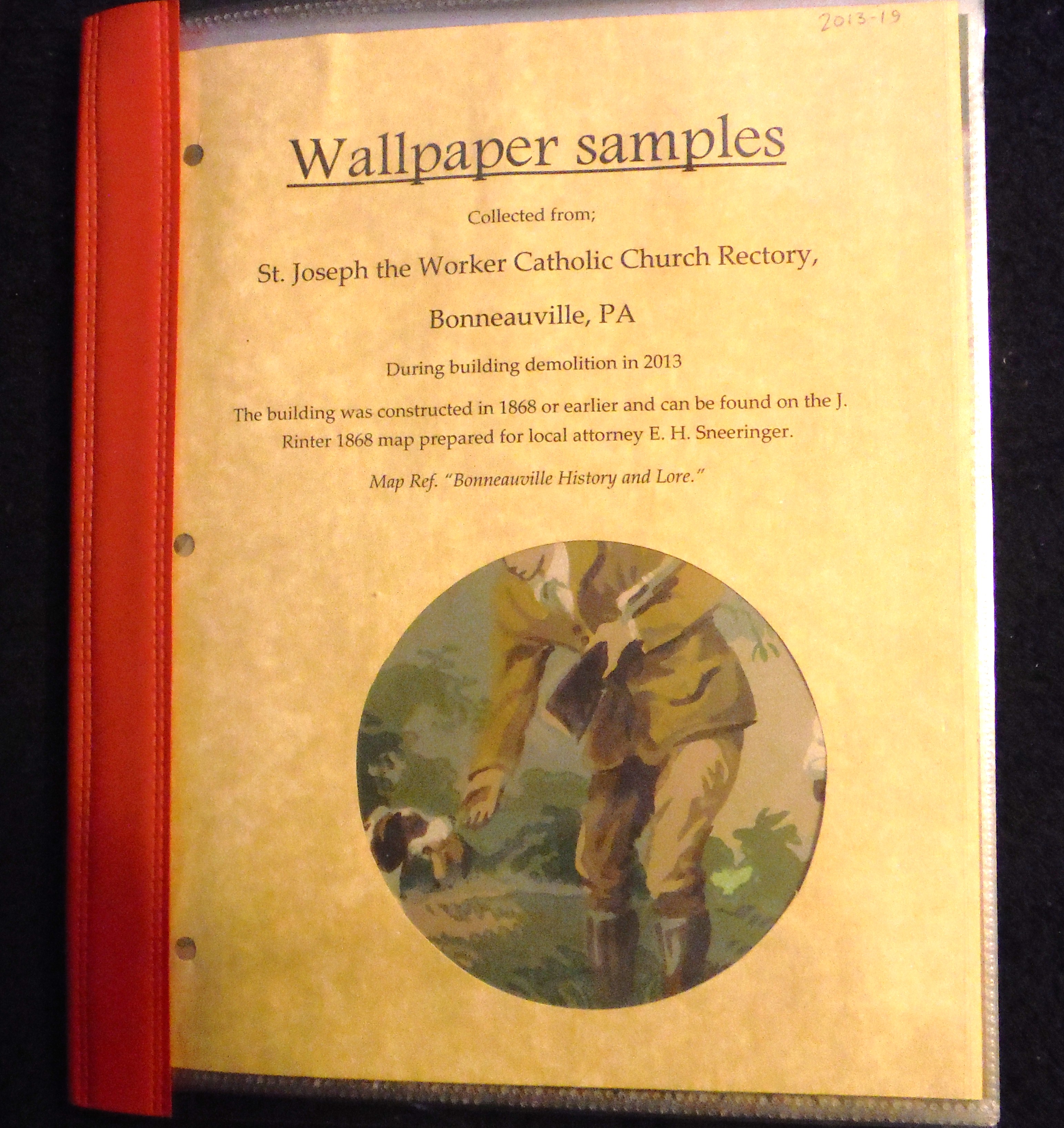St. Joseph's Rectory of Bonneauville was constructed about 1862. The rectory was razed in 2013. During dismantling, beneath layers of paint and wood paneling were many examples of decorative wallpaper that spanned the time of the construction of the building, up to the 1970's. There were at least six layers of paper on some walls. Twenty-two examples were collected. Several layers could not be separated for display.