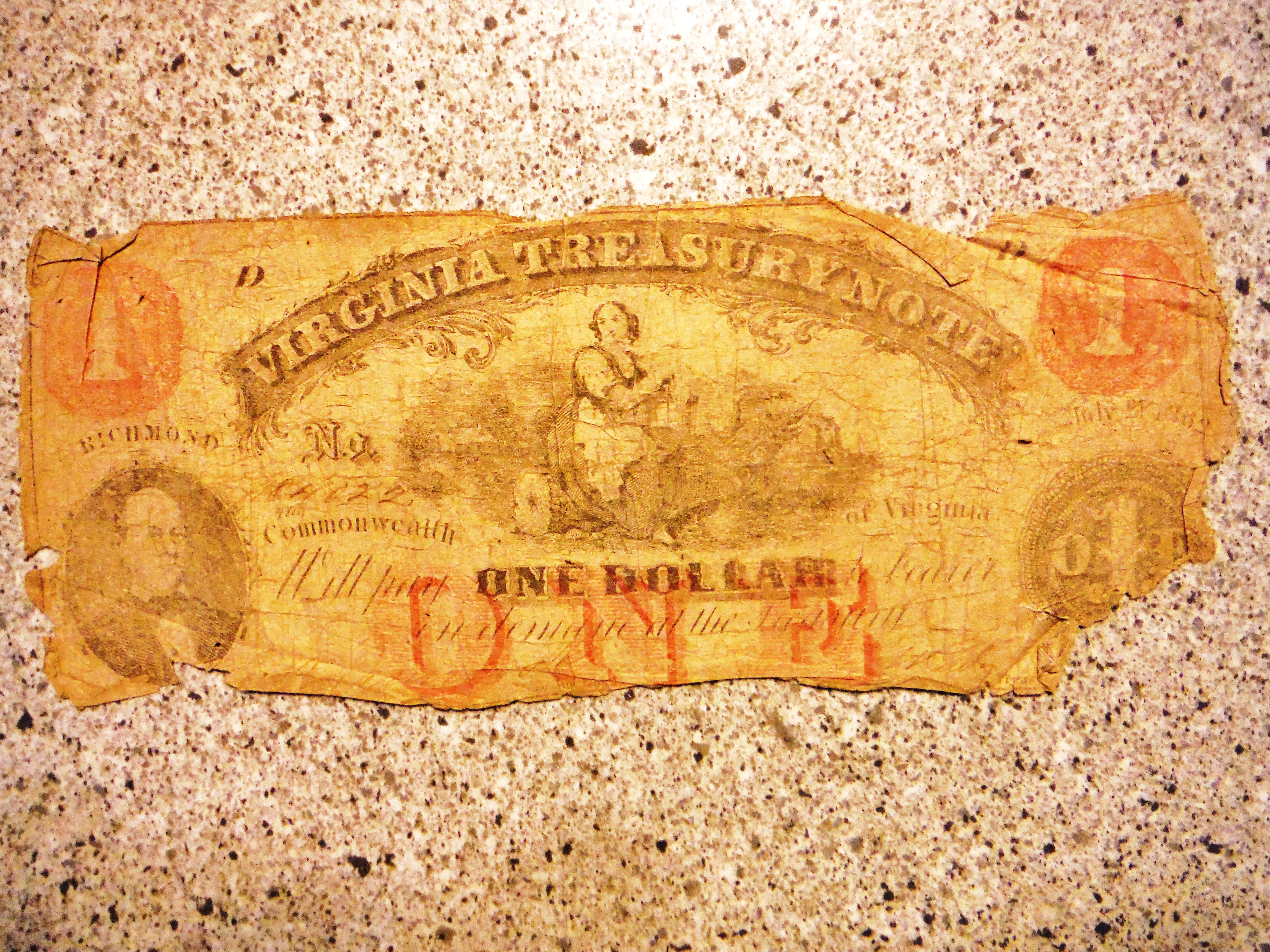 Money: Virginia Treasury Note-Confederate $1.00 Bill.