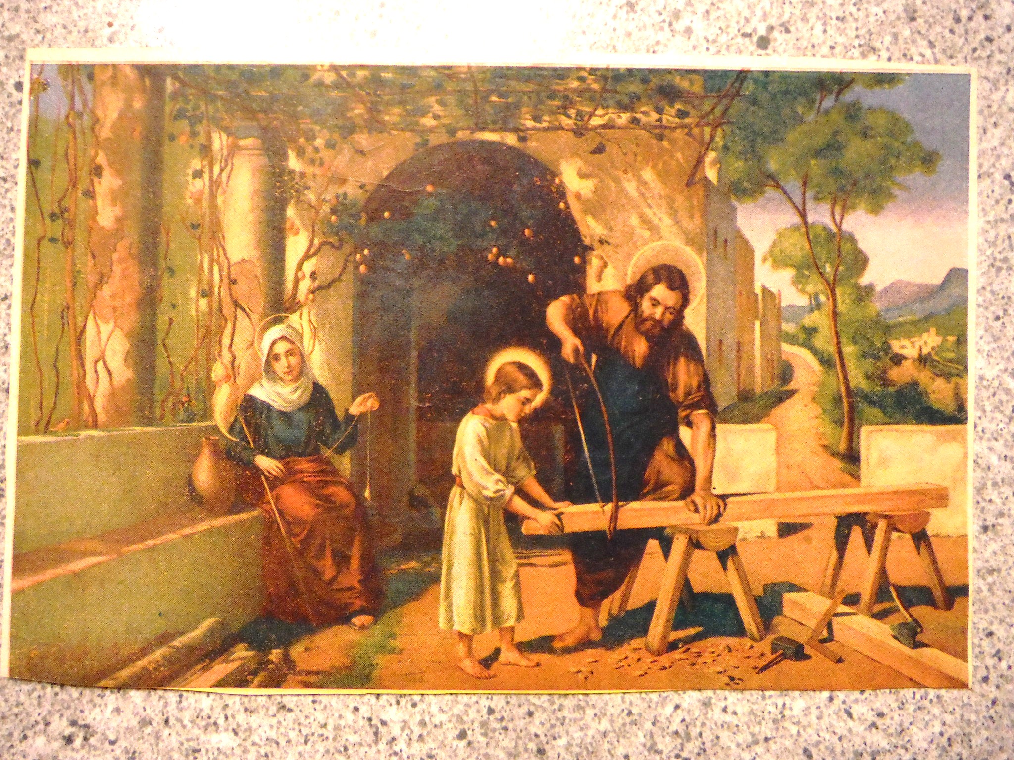 Found in I. V. Noel Day Book 2013-24. Jesus, Mary and Joseph art on face. Prayer on reverse side.