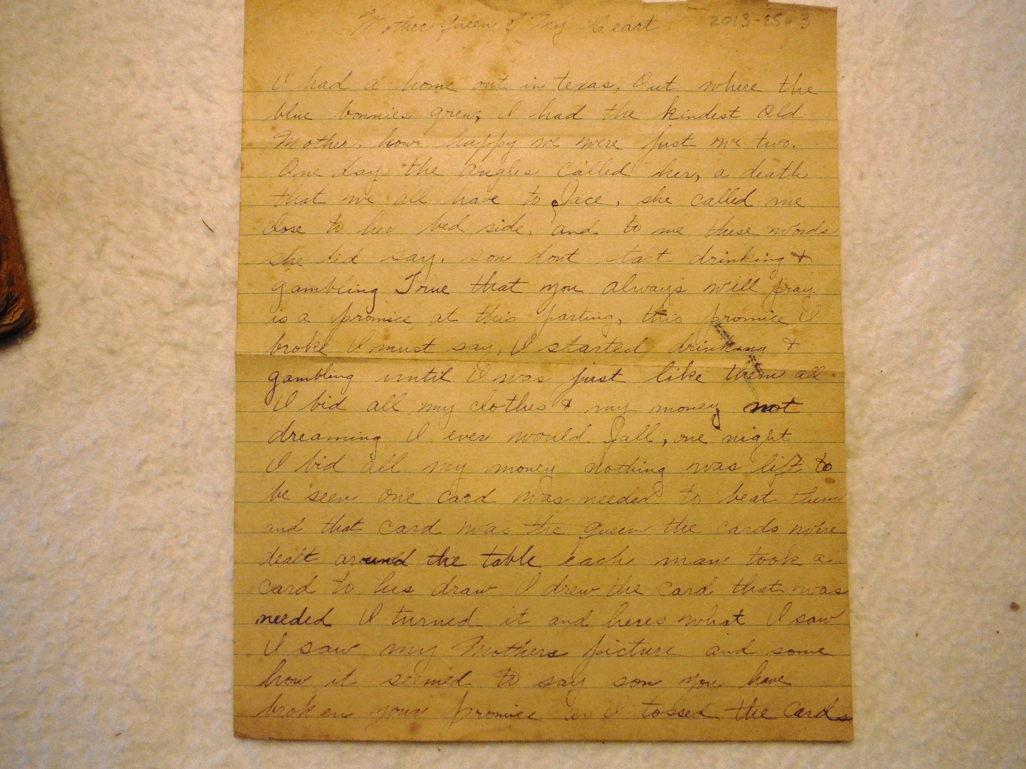 Found in 1917-1940, I. V. Noel Day Book No. 2013-25. Ficticious apology to mother for alcohol and gambling abuses. Anonymous. Handwriting appears to be that of I. V. Noel