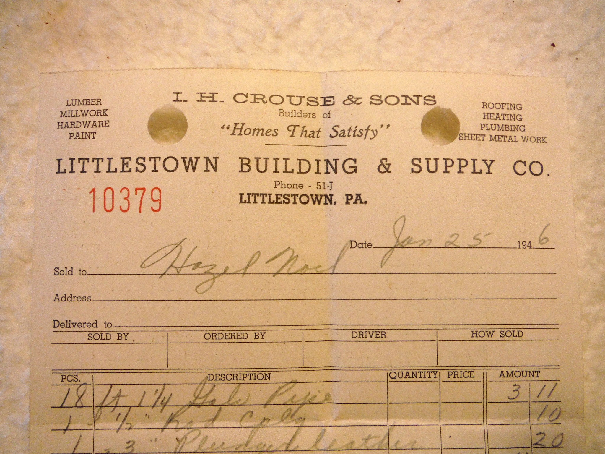 Hazel Noel, 1/25/46 receipt for rod, pipe, etc.