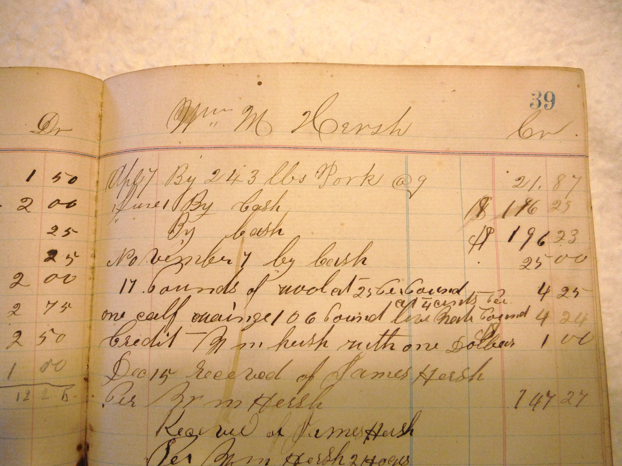 Unidentified business/proprieter. Primarily a tally of general merchandise. This book was found with a collection of ten ledgers from I. V. Noel of Bonneauville, PA. and others.