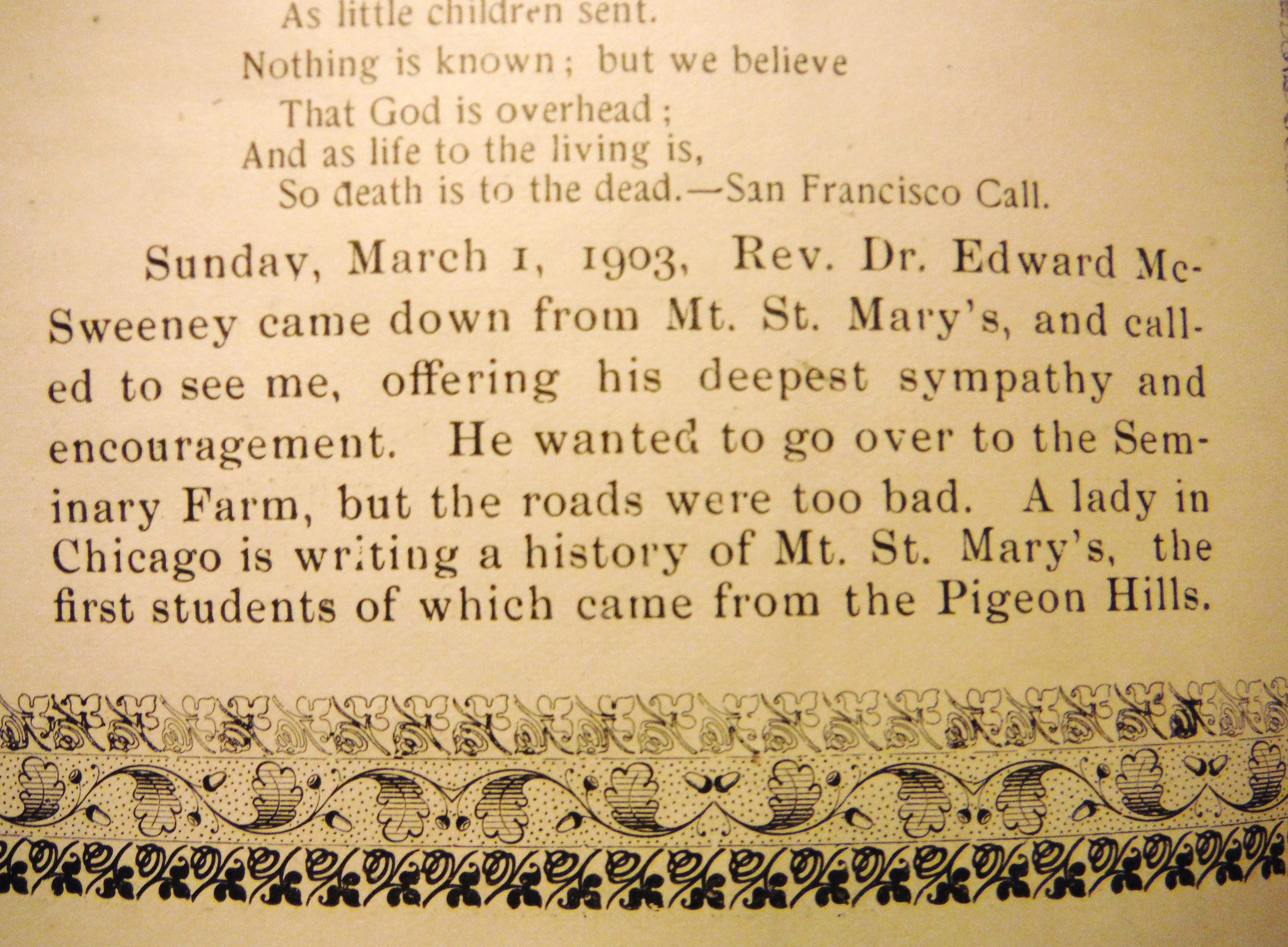 The format size of this Memorial Volume book is not consistent with most other of Reily's books. The fancy border around page text is typical.