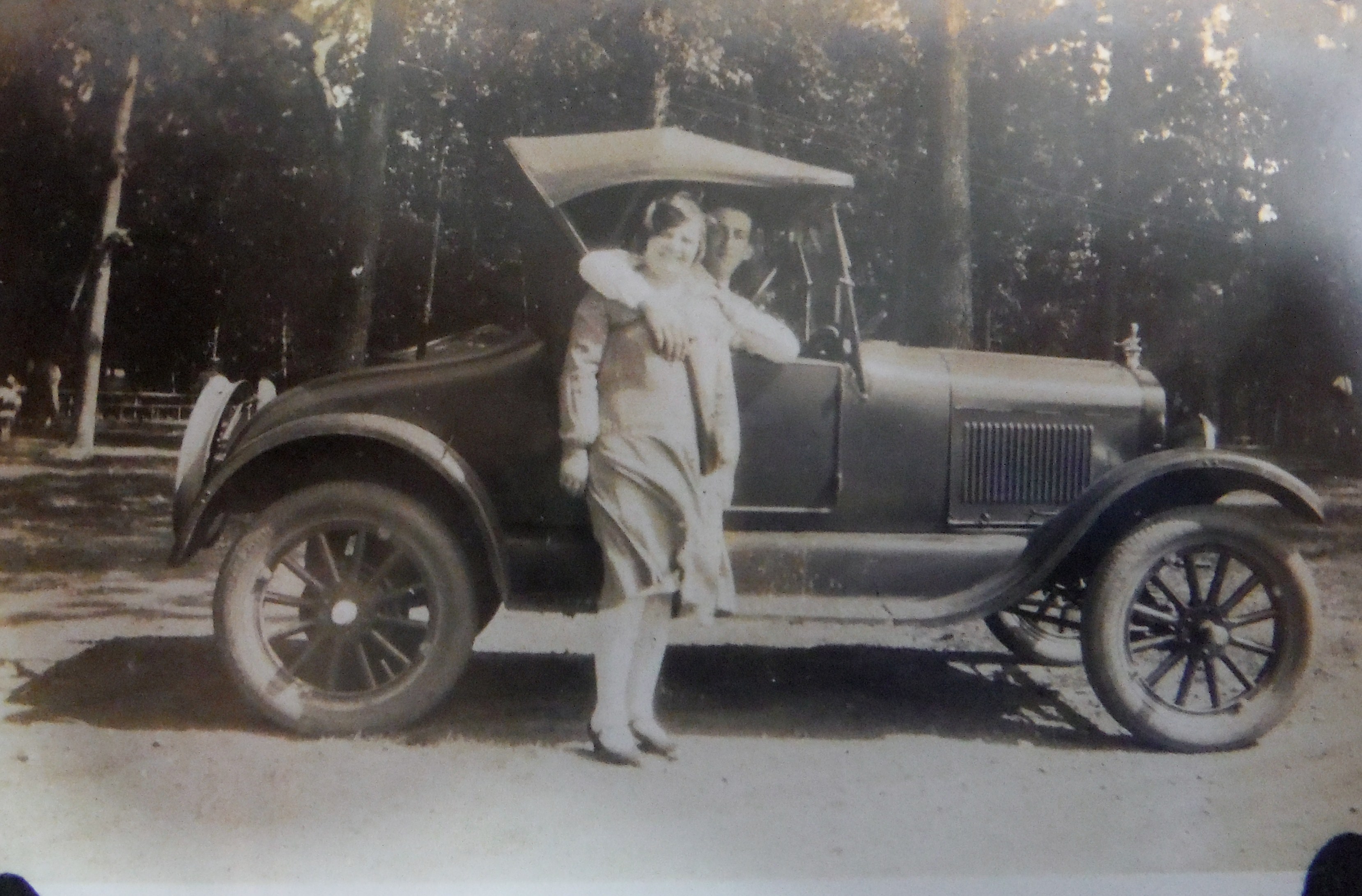 7-1- Helen and Marie Keiser (Two 1920's automobiles in background.) (KO)