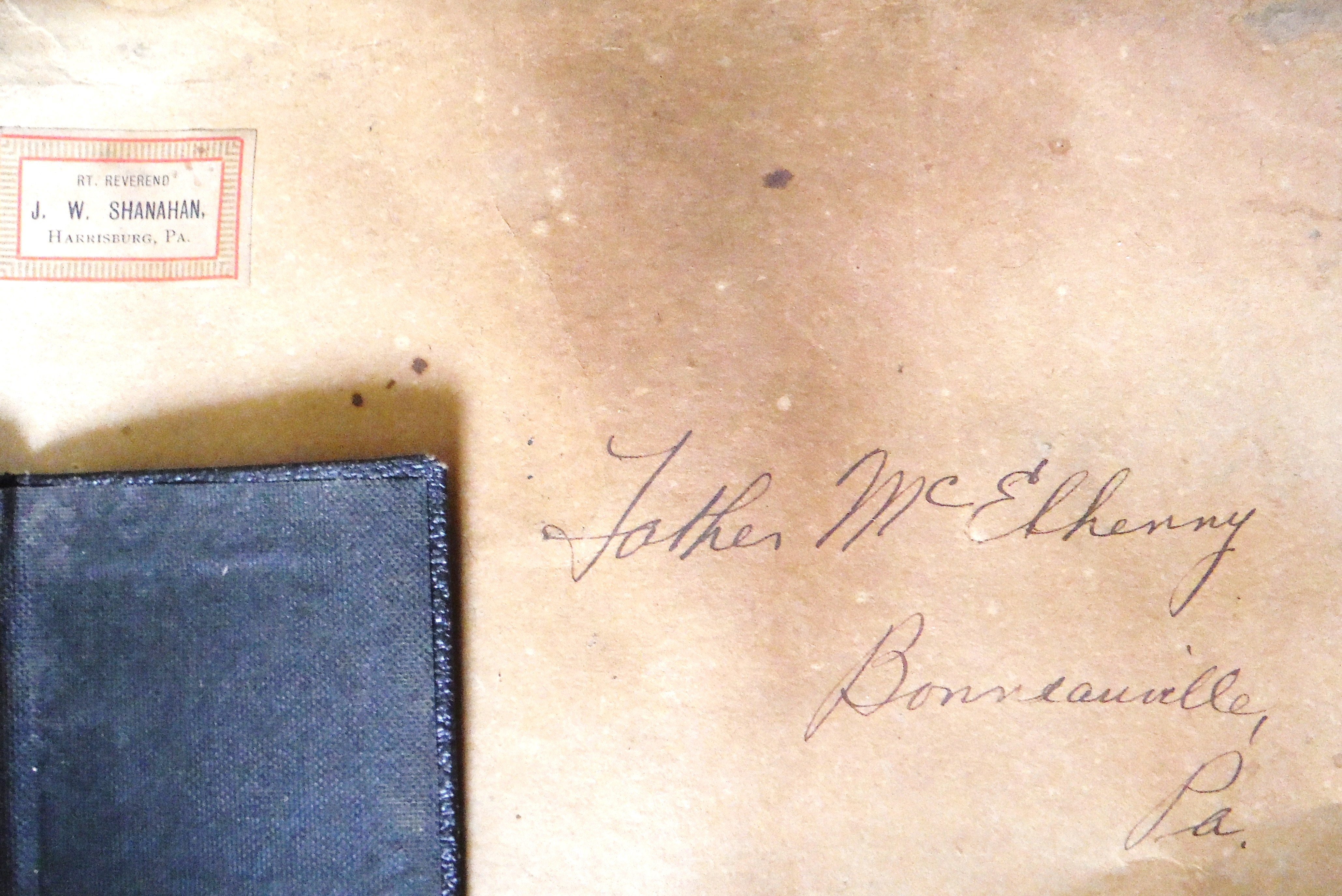 S. Package from Rev. J. W. Shanahan, Harrisburg, to Father McElhenny [sic].