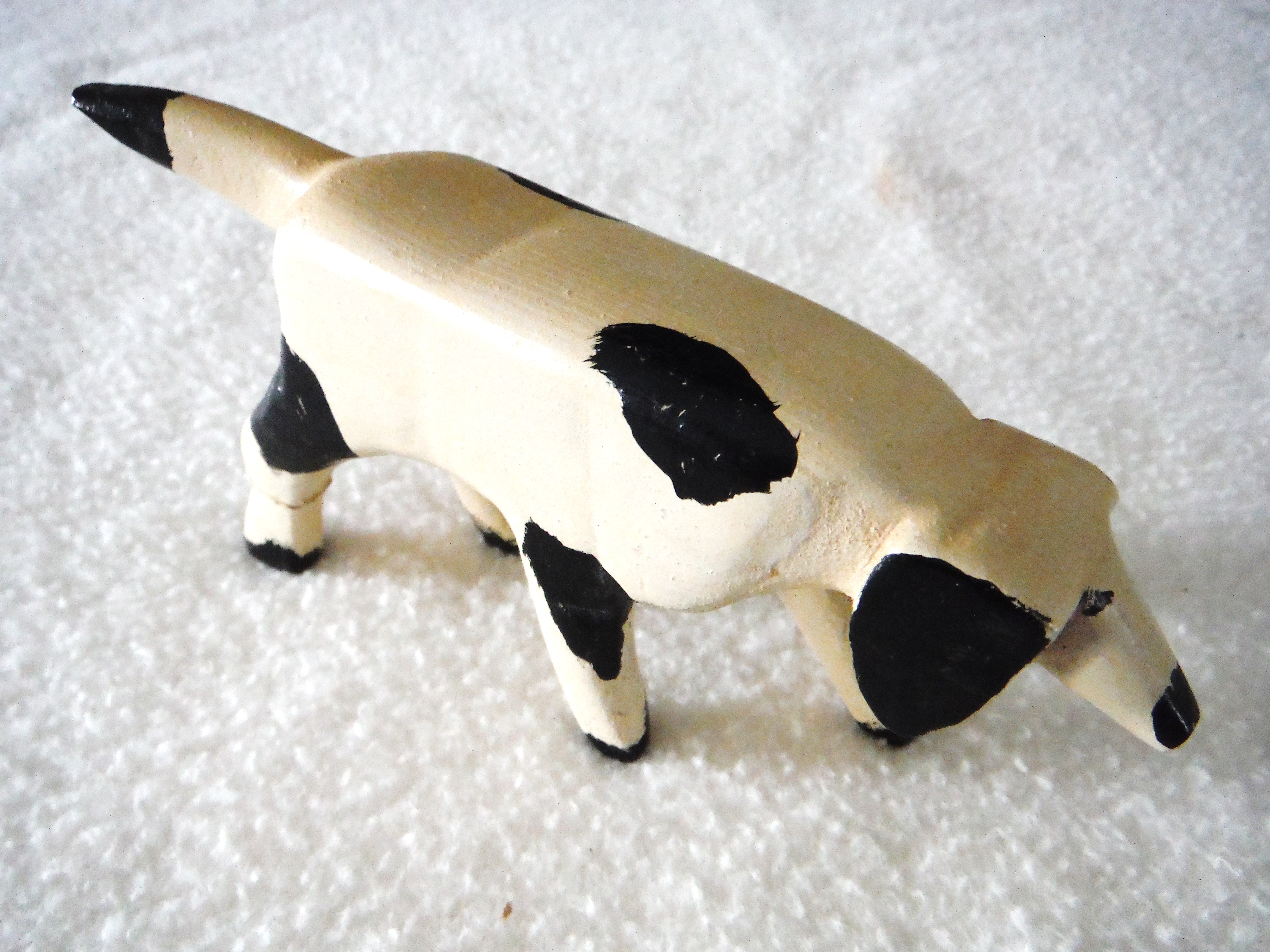 In the 1950's Ambrose and Bertha Myers lived in the sandstone farmhouse at 3 Cedar Street in Bonneauville. The rearmost part of their house was a small log structure build in the mid-1700's. (See Chapter I; "Early History-When Bonneauville was Beautiful" in the book; "Bonneauville History and Lore"). Around 1955 Ambrose and Bertha built a new ranch house at what is now an empty building lot at 2 Cedar Street. From there they continued to run their dairy farm. Within a few years a tiny mobile home was placed in the Myers cow pasture about 200 feet north-east of the new Myers house. The trailer's vintage was late 1940's or early 1950's. It was probably only eight feet wide and the yellow paint was already fading in places. A small man with snow white hair occupied the place alone. He was a kindly old gentleman, slightly stooped for his age. We who played baseball in the same pasture and lived just s a few houses away from his trailer simply knew him as Mr. Shorb. To a youngster of ten full of life and energy, it seemed like the kind old fellow was stored away in a can, peacefully awaiting a trip to the afterlife; one that could only have been to Heaven. If he had a TV, he would only have been able to receive one channel (Channel 8, Lancaster, PA). Although we children were warned to leave the old man alone, I could not help but sneak over and hang around him. He was more at peace than anyone I had ever met. Mr. Shorb liked to while away the hours carving and painting small wooden animals. This boxy, black spotted white dog is one of his folk art carvings. He whittled it for his landlady Bertha Myers.