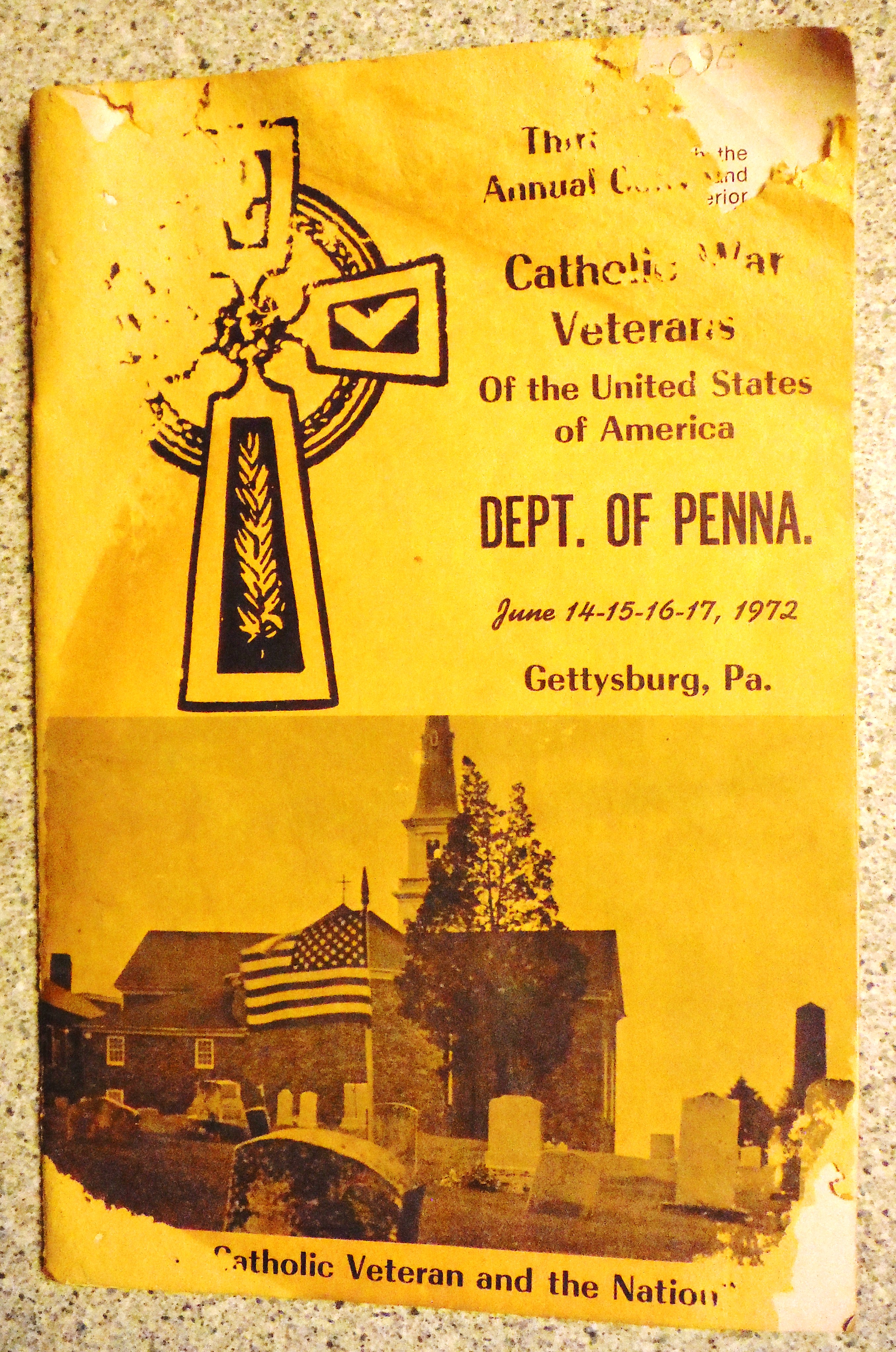 Catholic War Veterans 32nd annual convention booklet, June 14 - 17, Gettysburg, PA. Host Post and Auxiliary, Fr. Krichten Post 1342, Bonneauville, RD5 Gettysburg, PA. Post Officers: Arthur Weaver, James Strasbaugh, Leo Weaver, Rodney Noel, Eugene Long, Norman Smith, George Riser, Joseph Staub, John Legore, Richard Weaver, Bernard Frazer, Gregory Orndorff, Joseph Clabaugh, Msgr. Bernard Mattern.