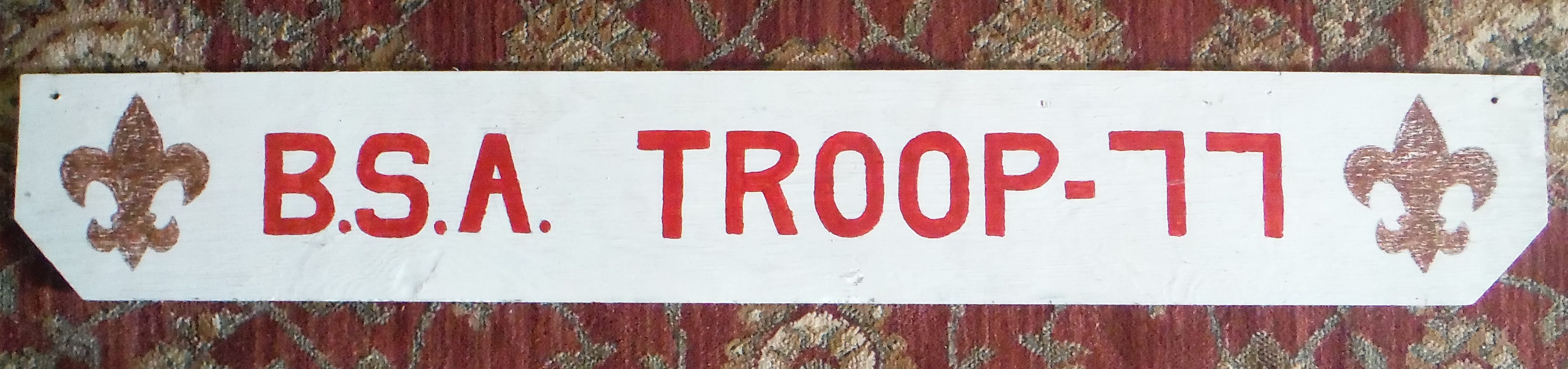 Boy Scout Troop 77, Black Walnut District, Bonneauville, PA "BSA Troop 77" with two Boy Scout fleur de lis Logos.