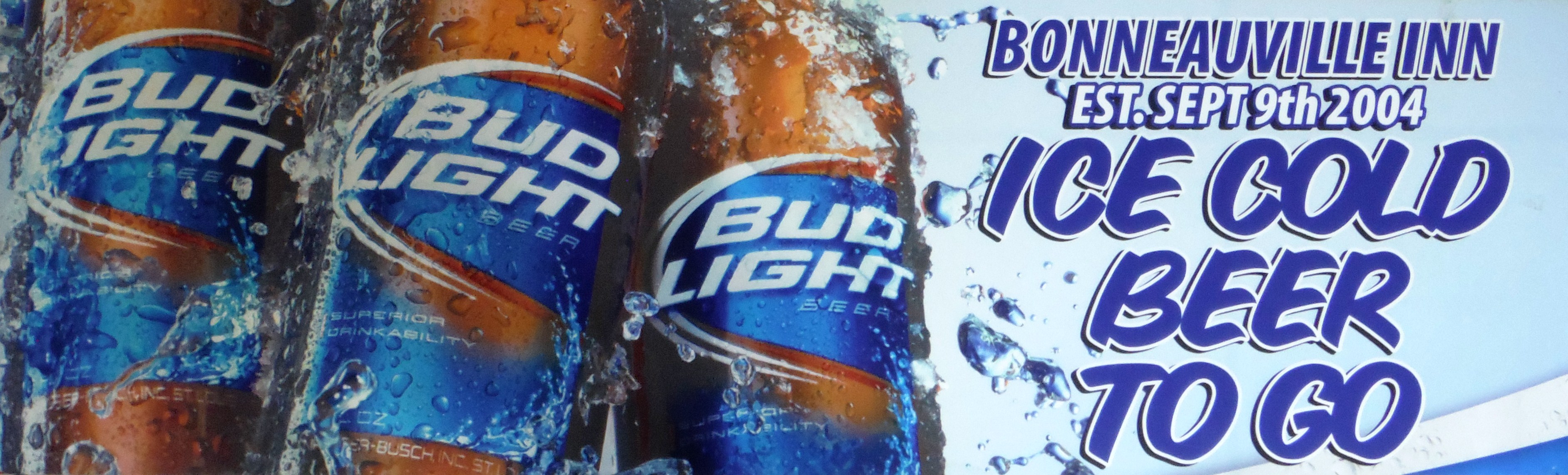 This plastic laminated banner advertises Both Budweiser Light Beer and "Bonneauville Inn," Est. Sept, 9th, 2004.