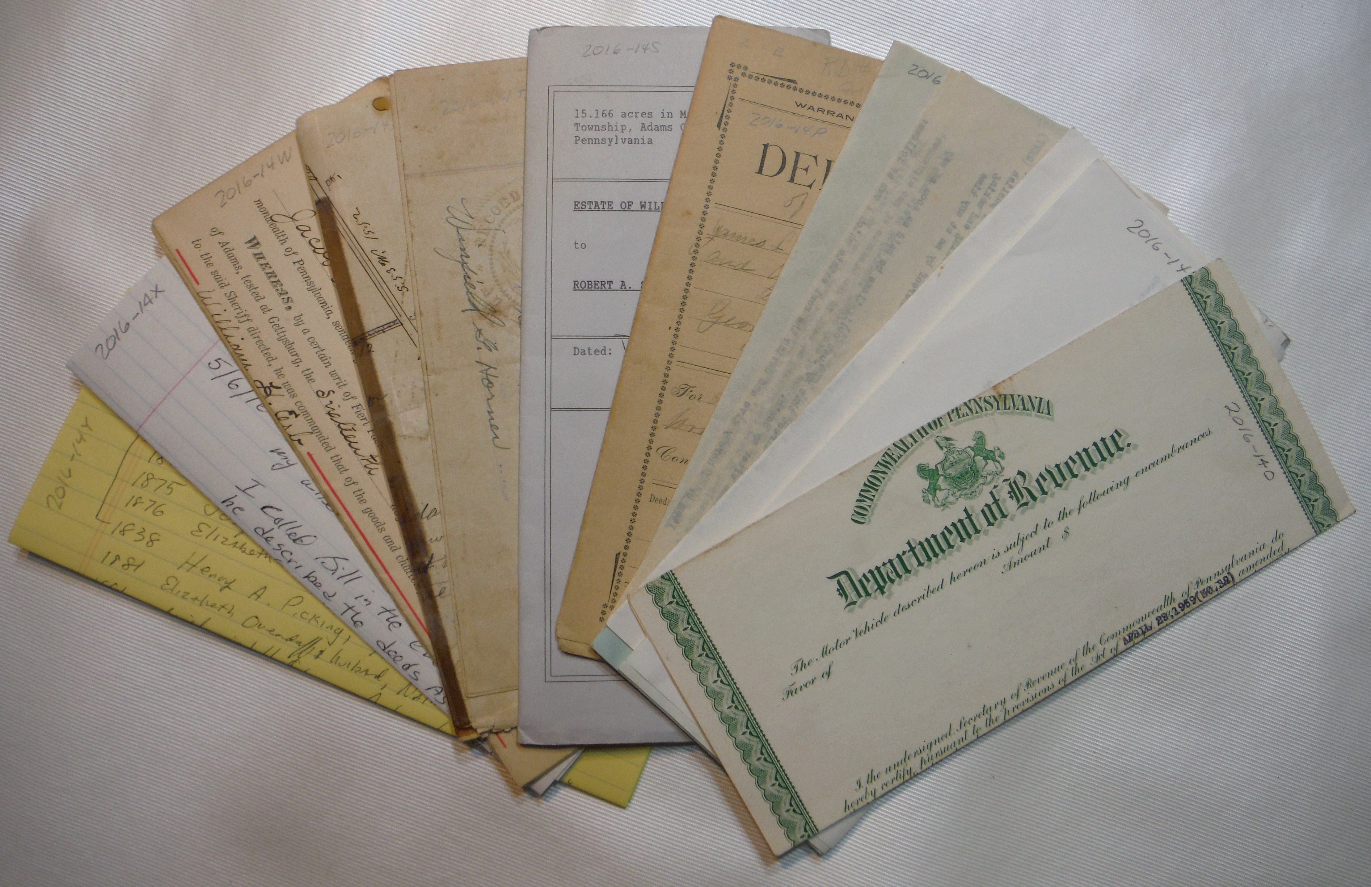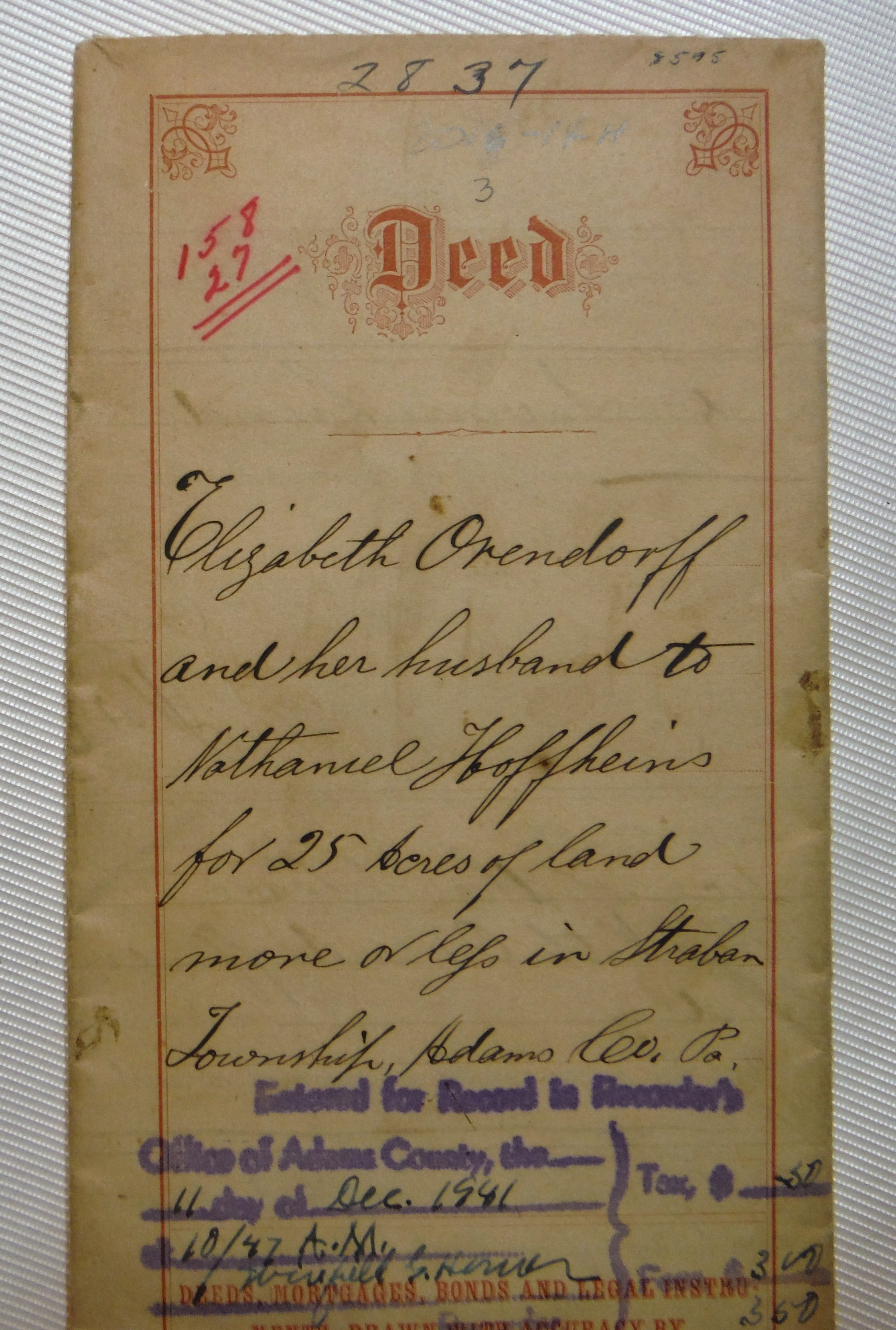 Review of this package of deeds paints a picture of a well developed farm on the Milhimes property in the mid 20th Century and before. A stone house and a tractor shed are all that is left standing in 2016. At one time there stood behind the house, a dairy barn, hog pen, chicken house and other structures typical of Adams County farms.