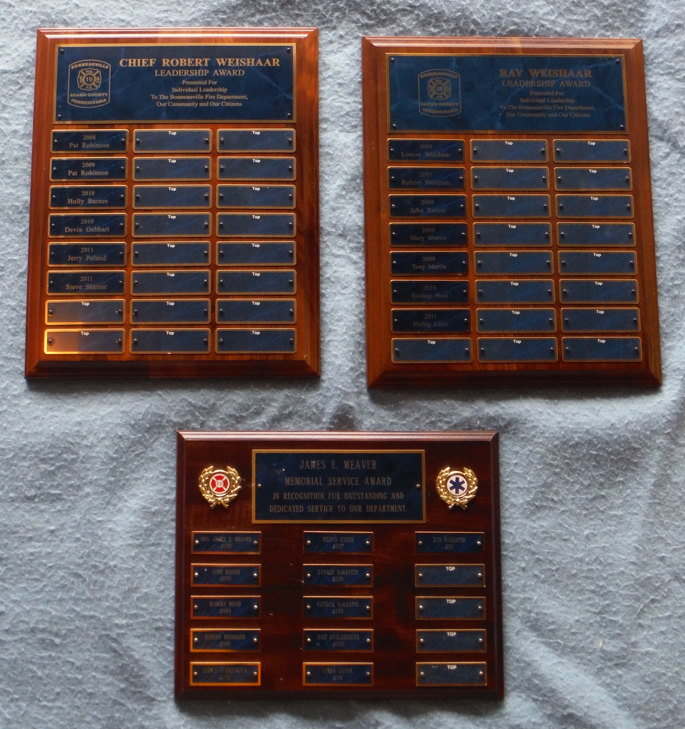 Group 3 Plaques (3) Leadership award 2007 - 2011, Leadership award 2005 - 2011, Memorial Service Award 2001-2011.