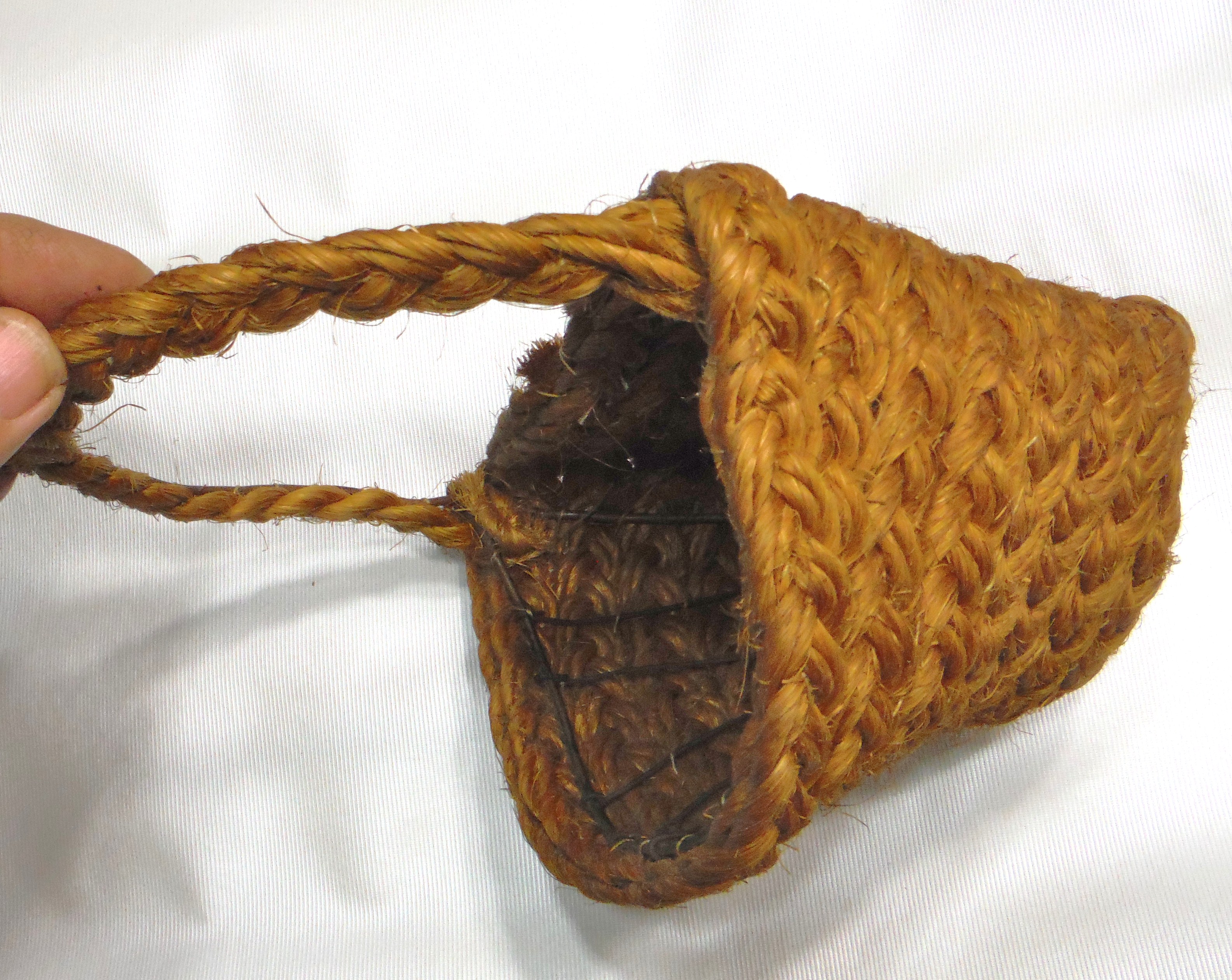 Jake sold and gifted his creations at Hanover Market House. This example, a wall pocket style hanging basket, is one of Mr. Kaisers creations. It was made in the 1960's for Louise Myers Orndorff. The piece is a true representation of a local folk craft.