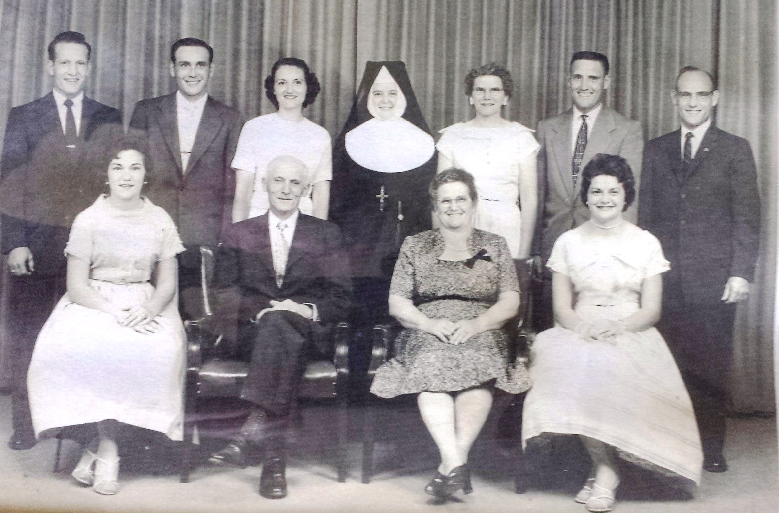 In 2015 my wife and I had the opportunity to visit Rita's sister, Sister Mary Dolores Sneeringer, a nun who is now retired and living at St. Joseph Villa, Flourstown, PA (near Philadelphia). On the window sill of Sister Mary Dolores' room sat an eight by ten black and white framed photograph. The eleven faces were familiar, (Rita is back row, fifth from left.) I had grown up two doors (west) of Clarence and Lizzie's house. Every memory of the Sneeringer's during my childhood is a good one. The gentle kin seemed to define familial love.