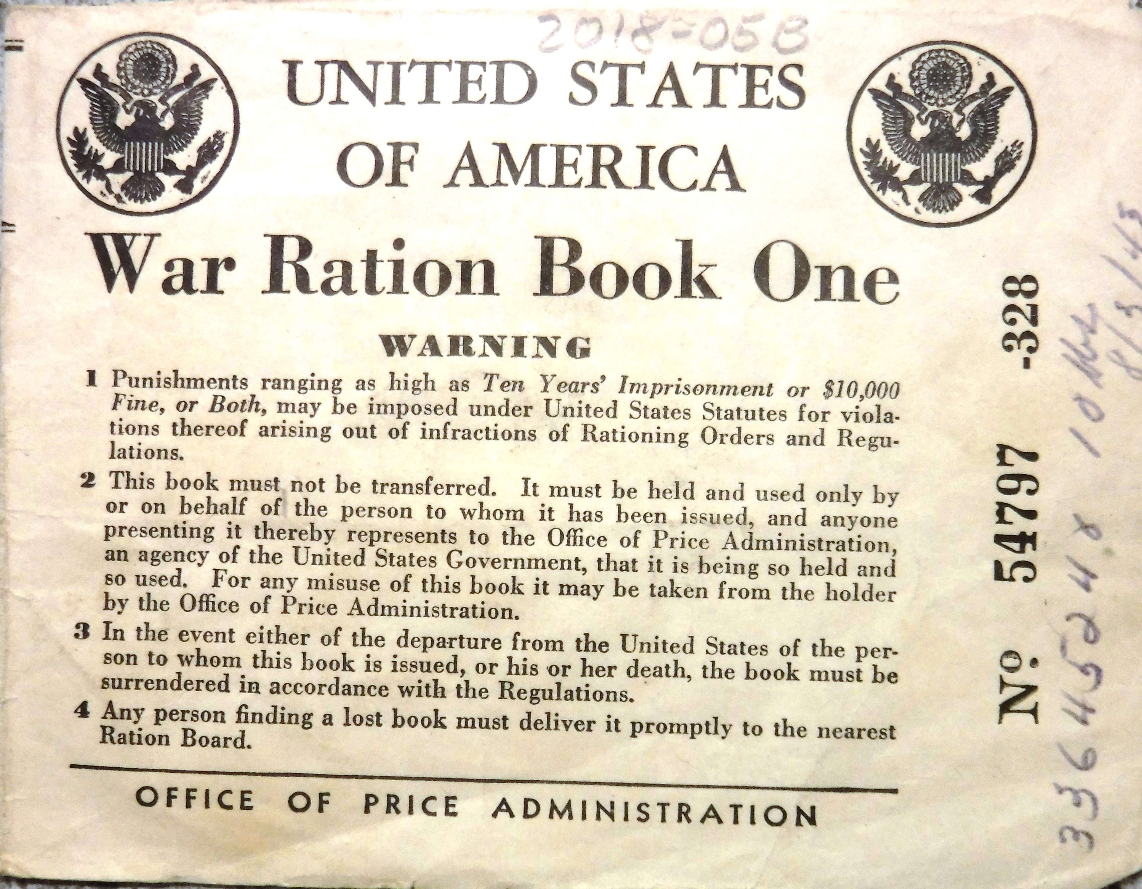 2018-05B - Ration Book No. 1 - This is a single, folded sheet of paper not a booklet (as labeled).