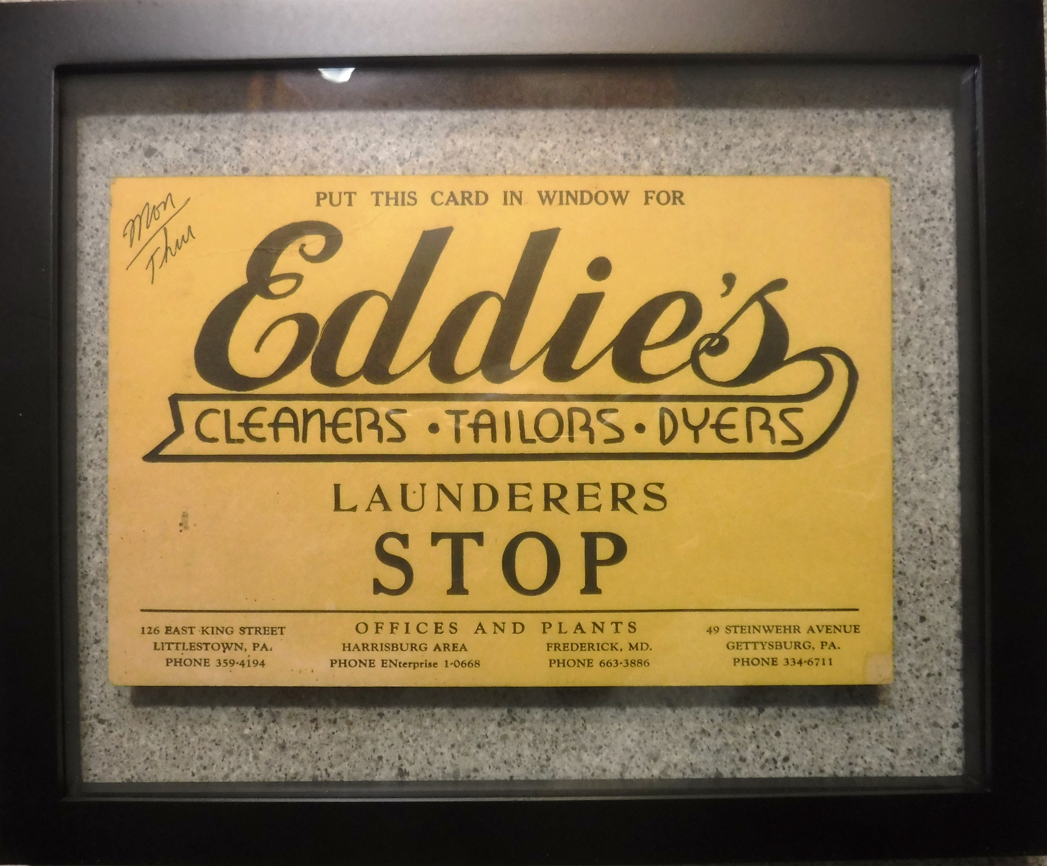 On September 9, 1949, The Gettysburg Times displayed a large advertisement for Eddie’s Cleaners. The company was located on East King Street in Littlestown, PA. The ad read in part; “Presenting Adams County’s newest and most complete cleaning service.” It was noted that in addition to providing dry cleaning and laundry services, the establishment employed a staff of tailors and dyers. “A fleet of Eddie's Cleaners trucks is ready to serve.”