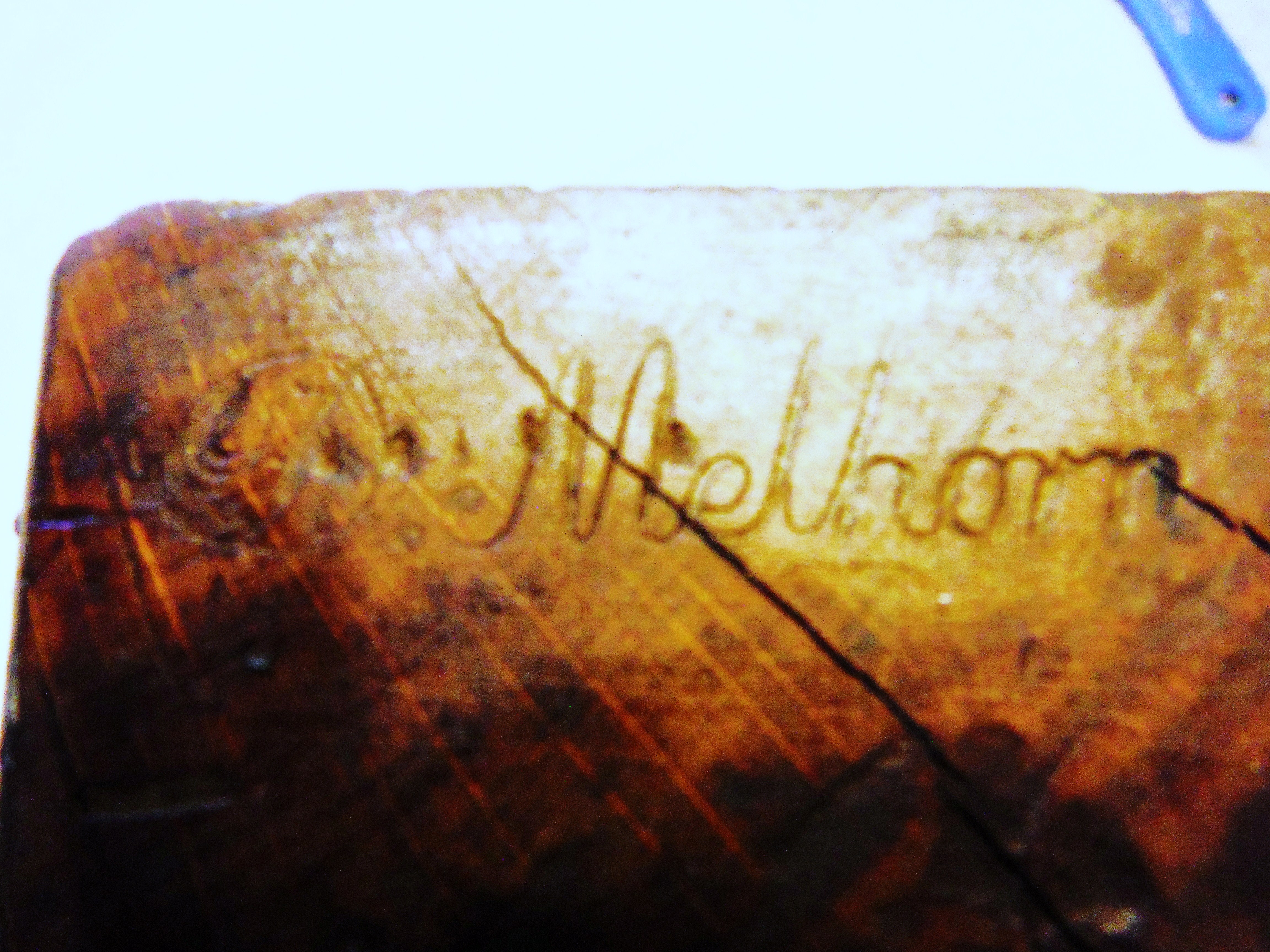 Richard "Dick" Melhorn was a carpenter and wood crafter who lived and operated a wood shop at 7 or 9 Pine Street Bonneauville, PA in the first half of the 20th Century. This wood plane is stamped on the front end-grain with "D. Melhorn" in script.