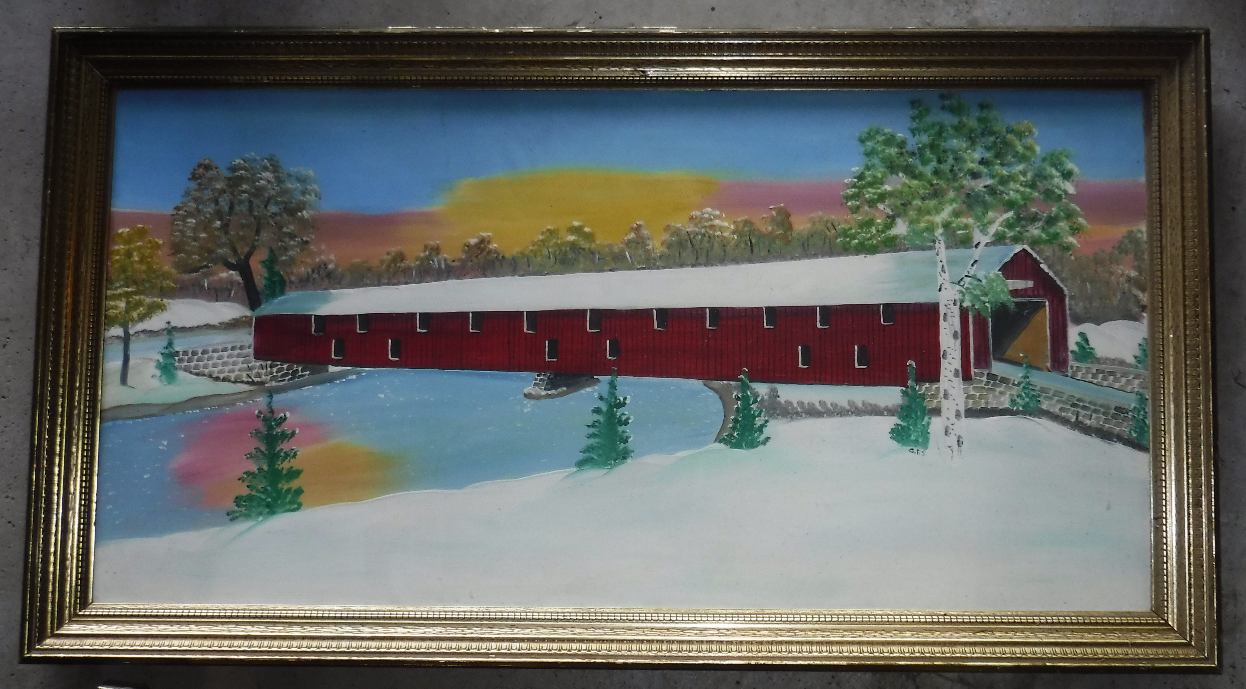 Covered Bridge scene. Unsigned. Attributed by family, to Guy Sanders, fellow resident of Bonneauville and and long time friend of Richard C. and Nadine Groft of Bonneauville.