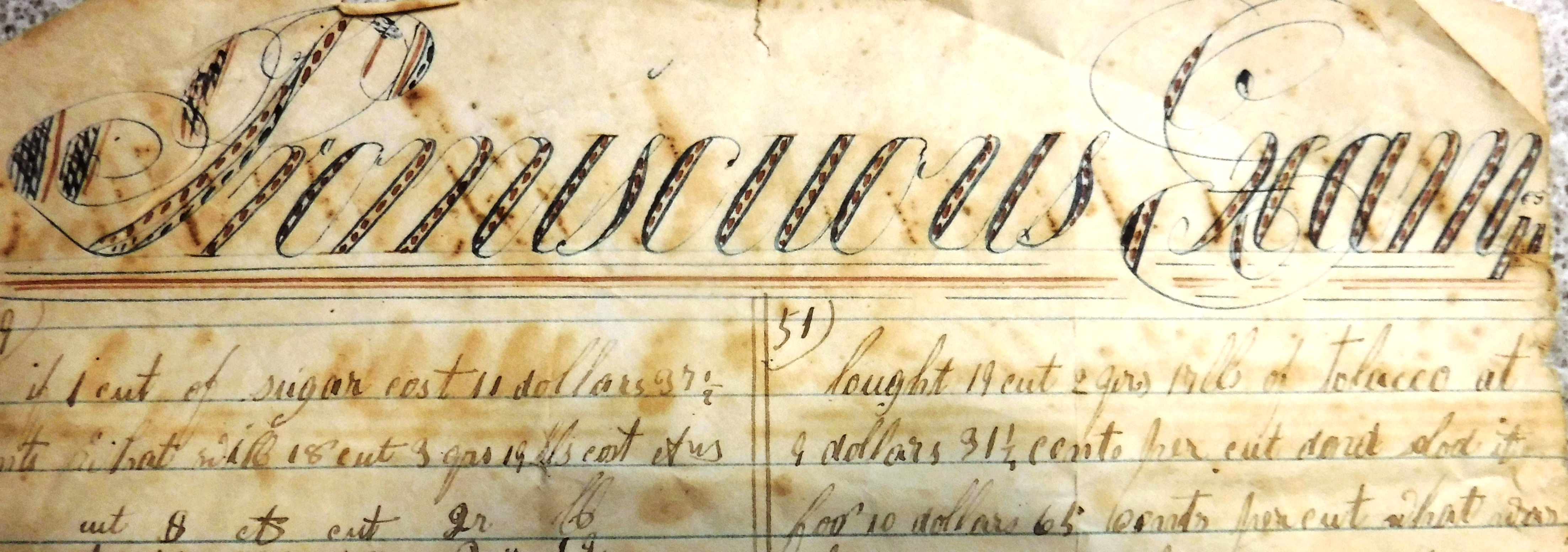 The oldest ephemera in the Kuhn Collection is from the Bevenour Family, and dates as far back as the 1848. Both Michael Bievenouer and Noah Bevenour’s names are found on different pages. One page notes: “Noah Bevenours teaching in North Codorous Township, York County, Pa. 1860”. Another: “South Codorous Townshp, York County. Pa. By Noah Bevenouer, Teacher of Paradise Township, York County, Pa. November 14th, 1859.”