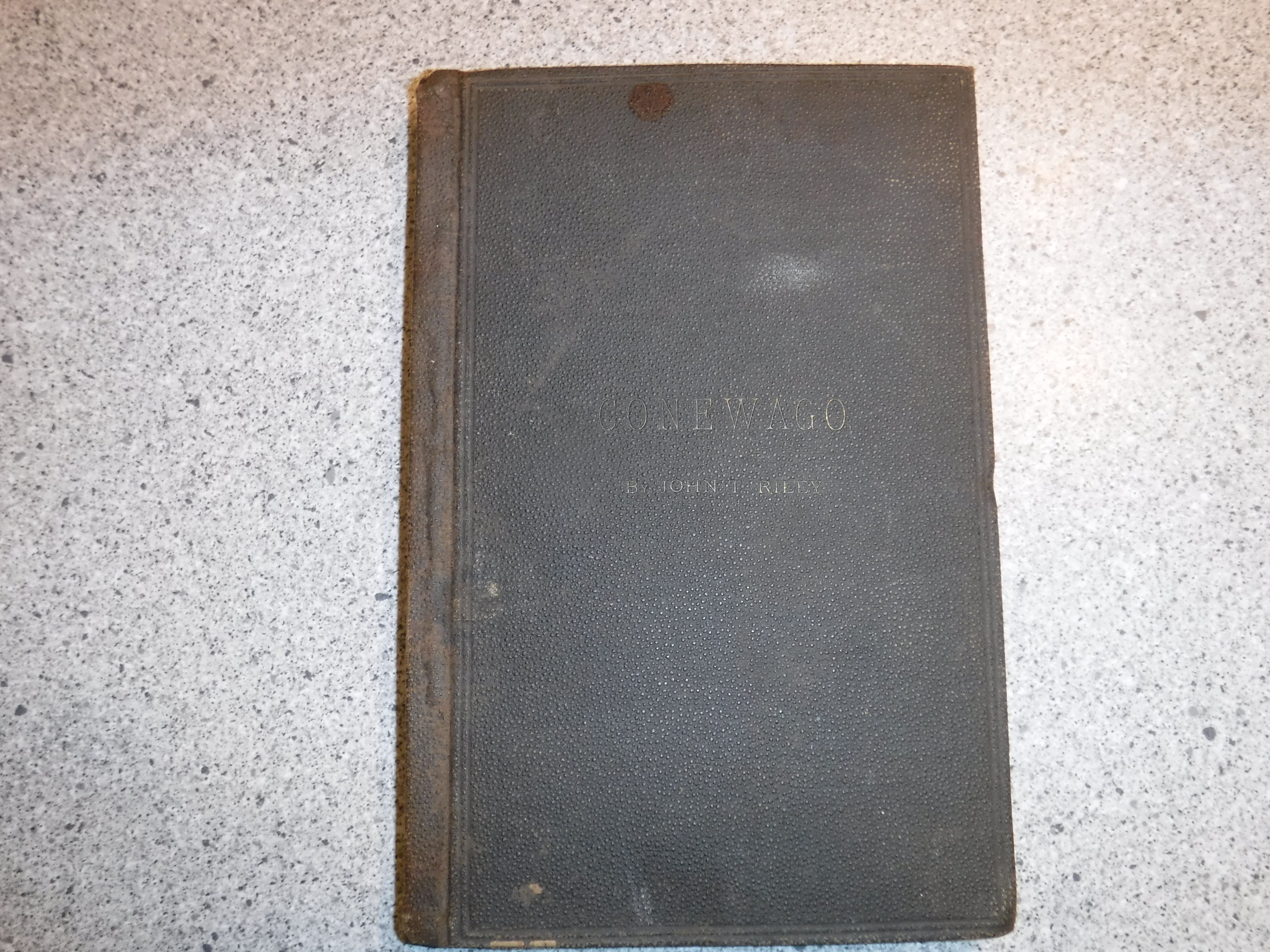 This history was penned by onetime Bonneauville resident John T. Reily. It was for Mr. Reily that the John T. Reily Historic Society of McSherrystown, PA was named. The publish date of the book is 1885. It represents one of his earliest of his many volumes. Note that most of the photos in the book were individually developed, trimmed, and glued to their respective pages. Time and use have nearly erased the goldleaf title from the cover and spine of the book.