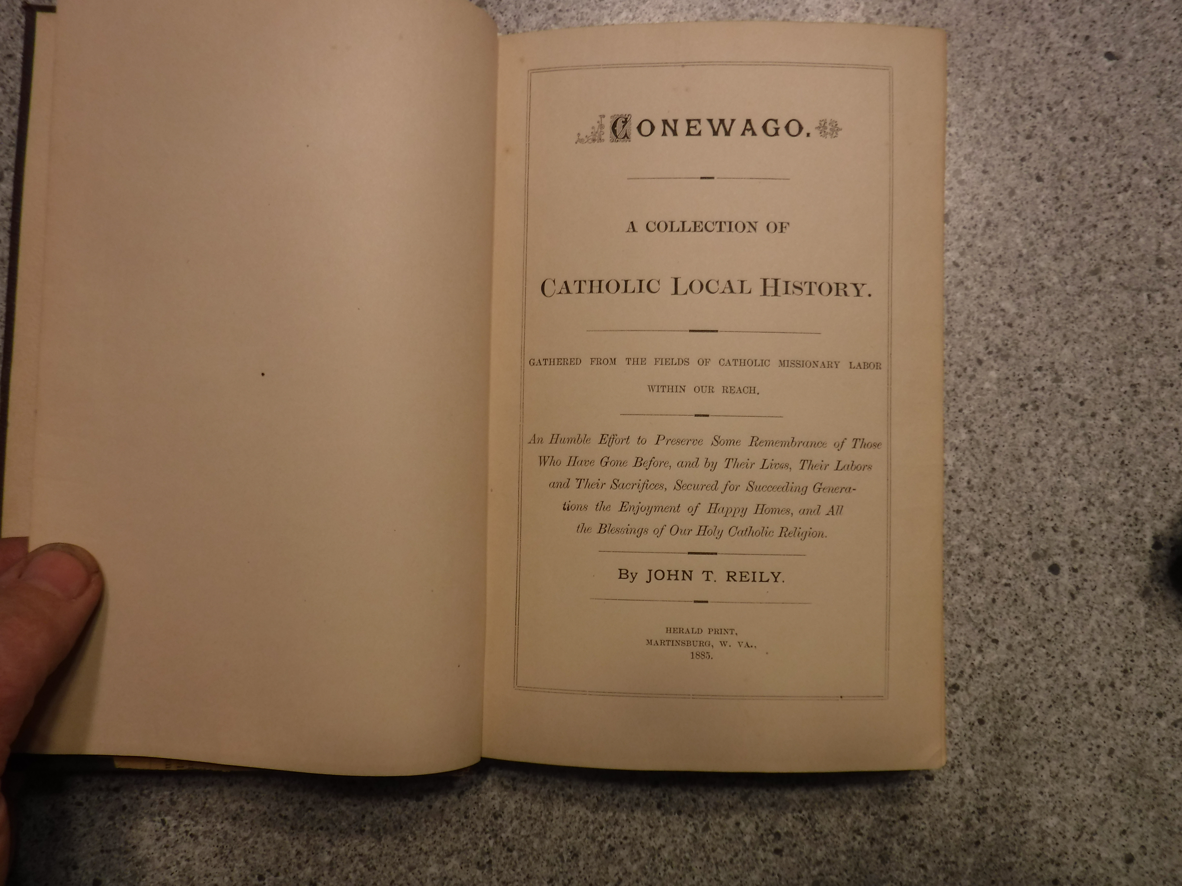 The book well documents the Conewago Chapel and the surrounding towns that it served; towns whose Cathiolic citizenry attended Services at Conewago Chapel before churches were built in each of those villes. Pages 102 - 104 describe the earliest history of St. Joseph's Church in Bonneauville. Reily recalls that as a Catholic Alter Boy he "served mass in Bonneauville, Paradise, and Conewago."