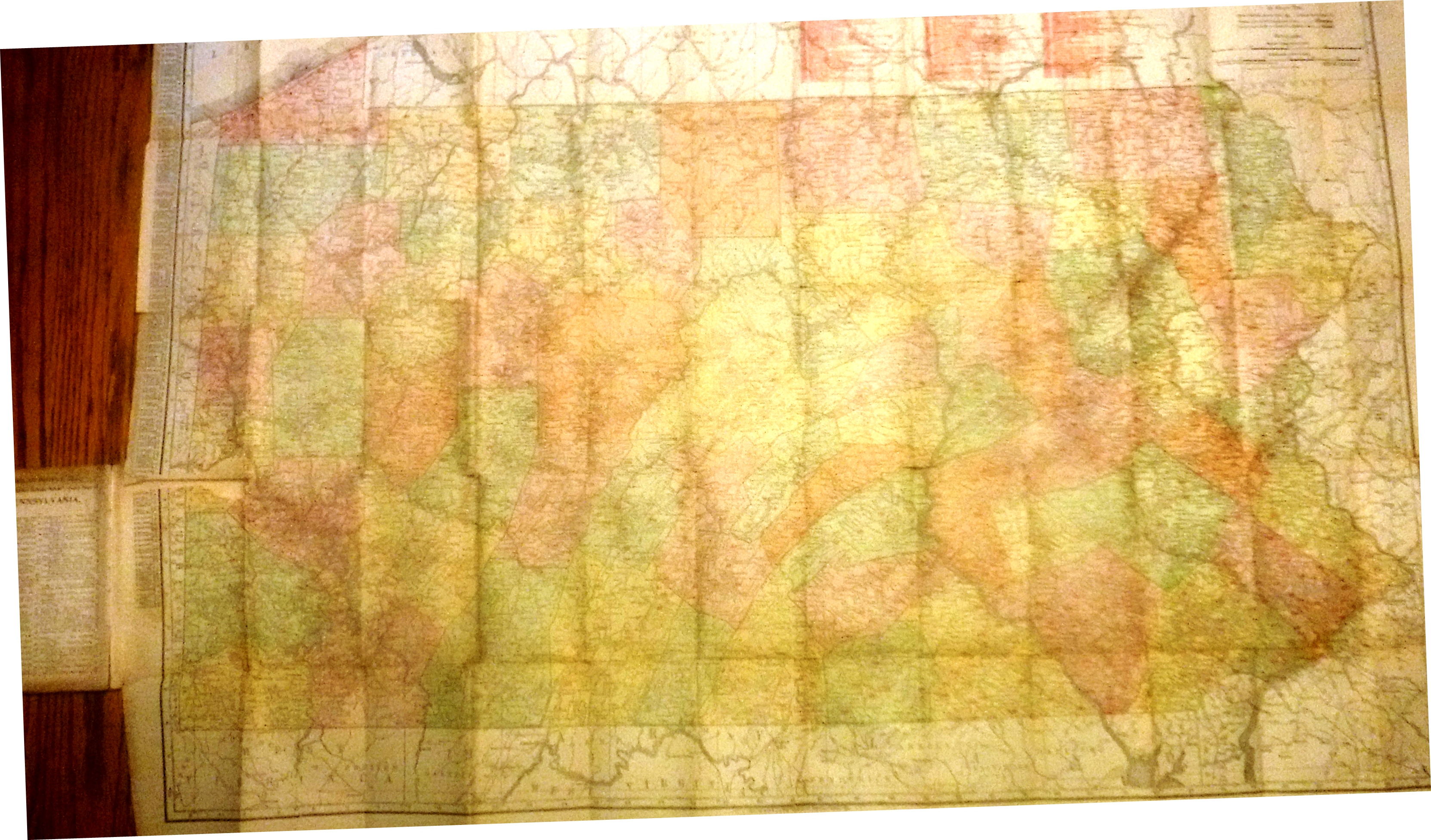 Folded at the end of the 174 pages of data in this small 4 1/2" x 6" booklet, is a PA State map which unfolds to 28" x 40".