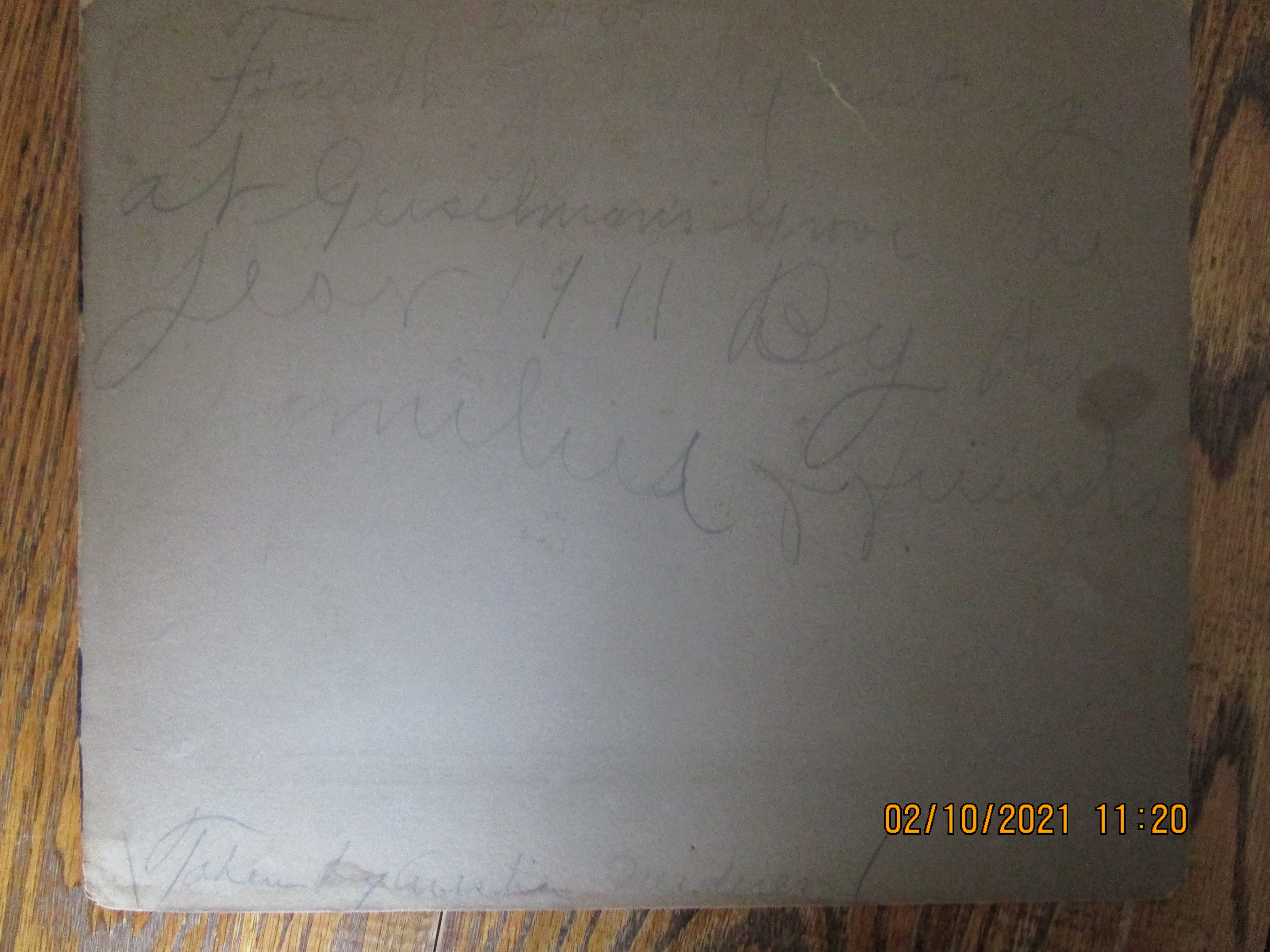 Other text on the back of the photo reads "Fourth of July", "Year 1911", "? families and friends"