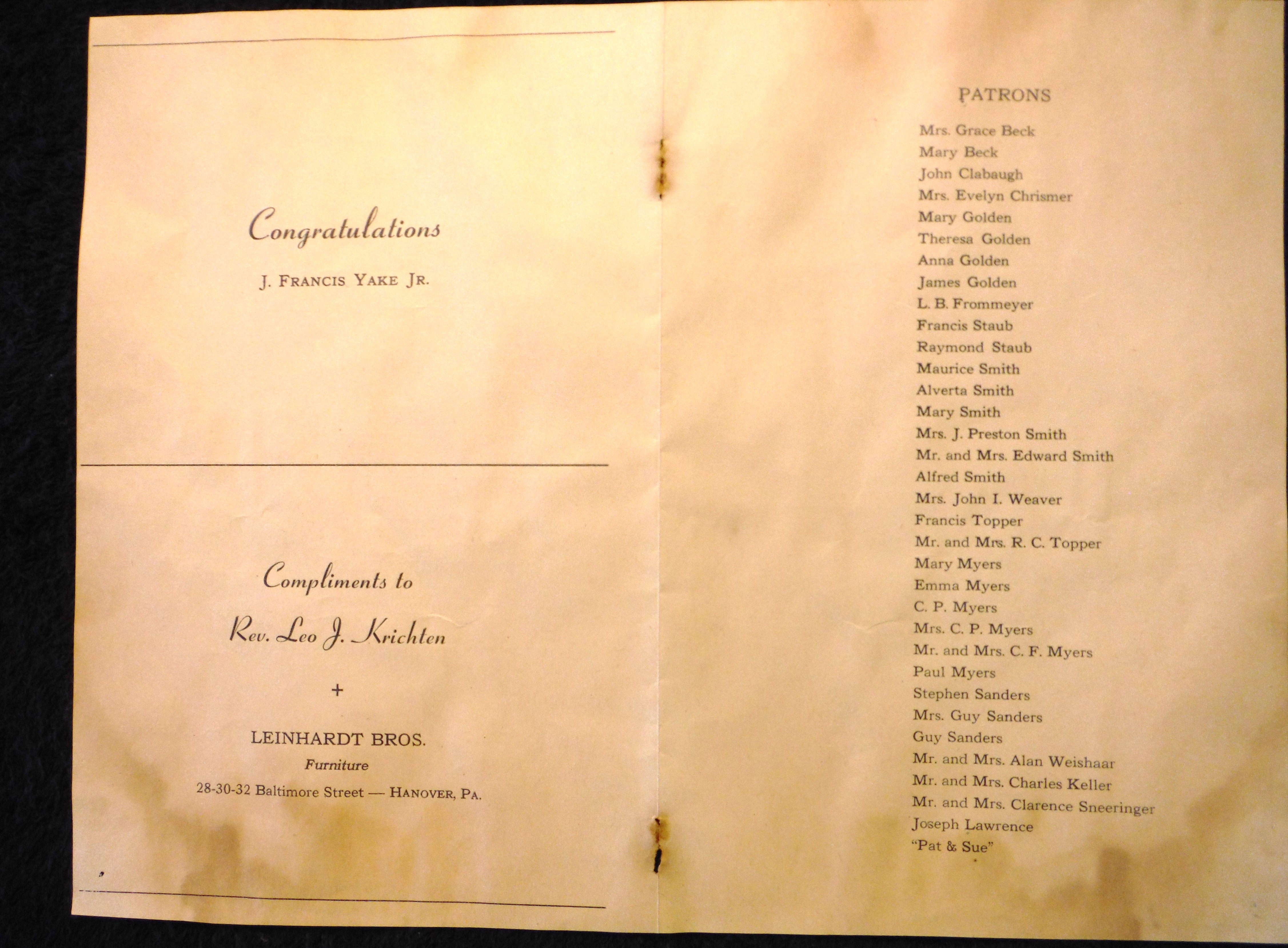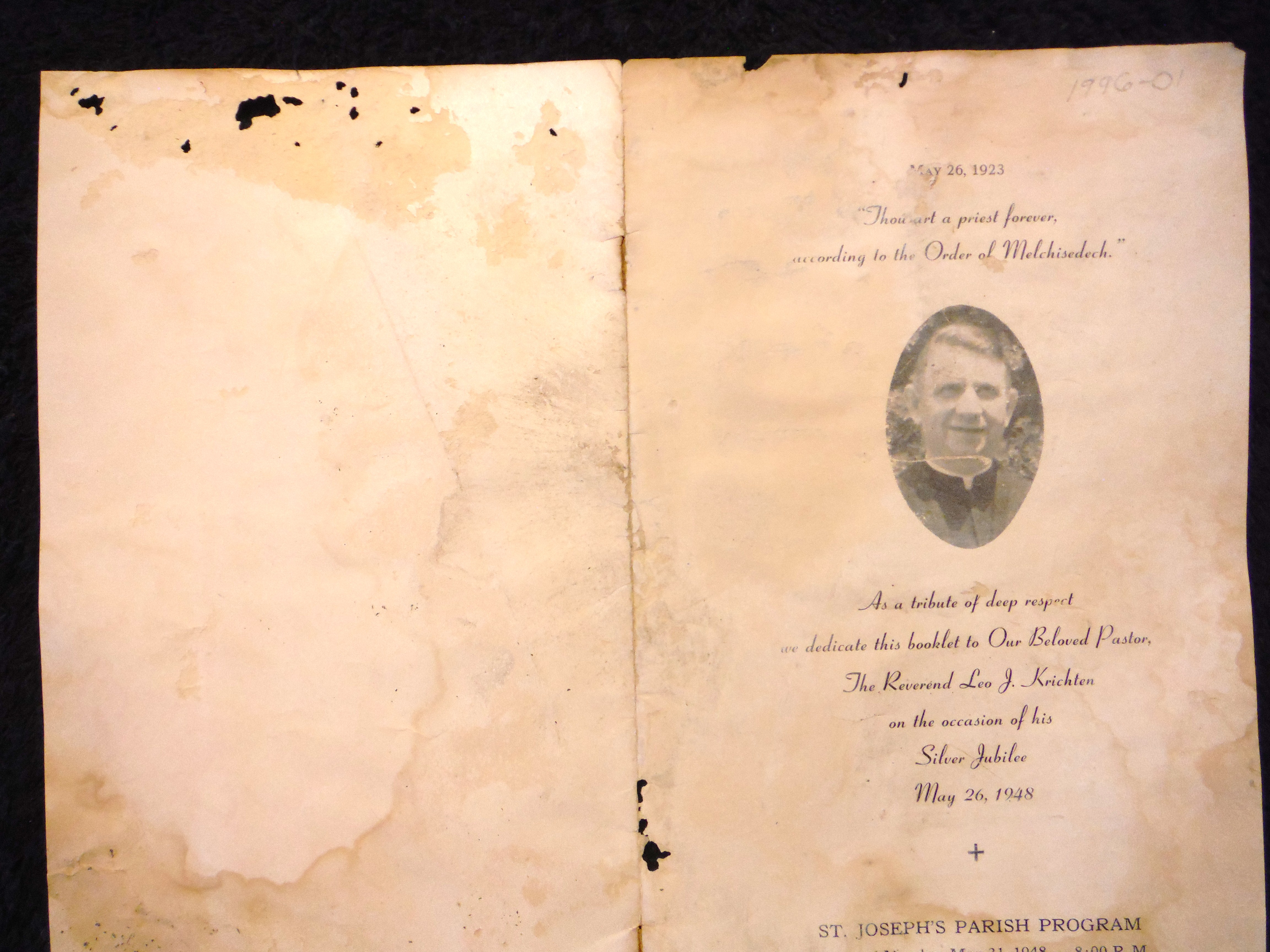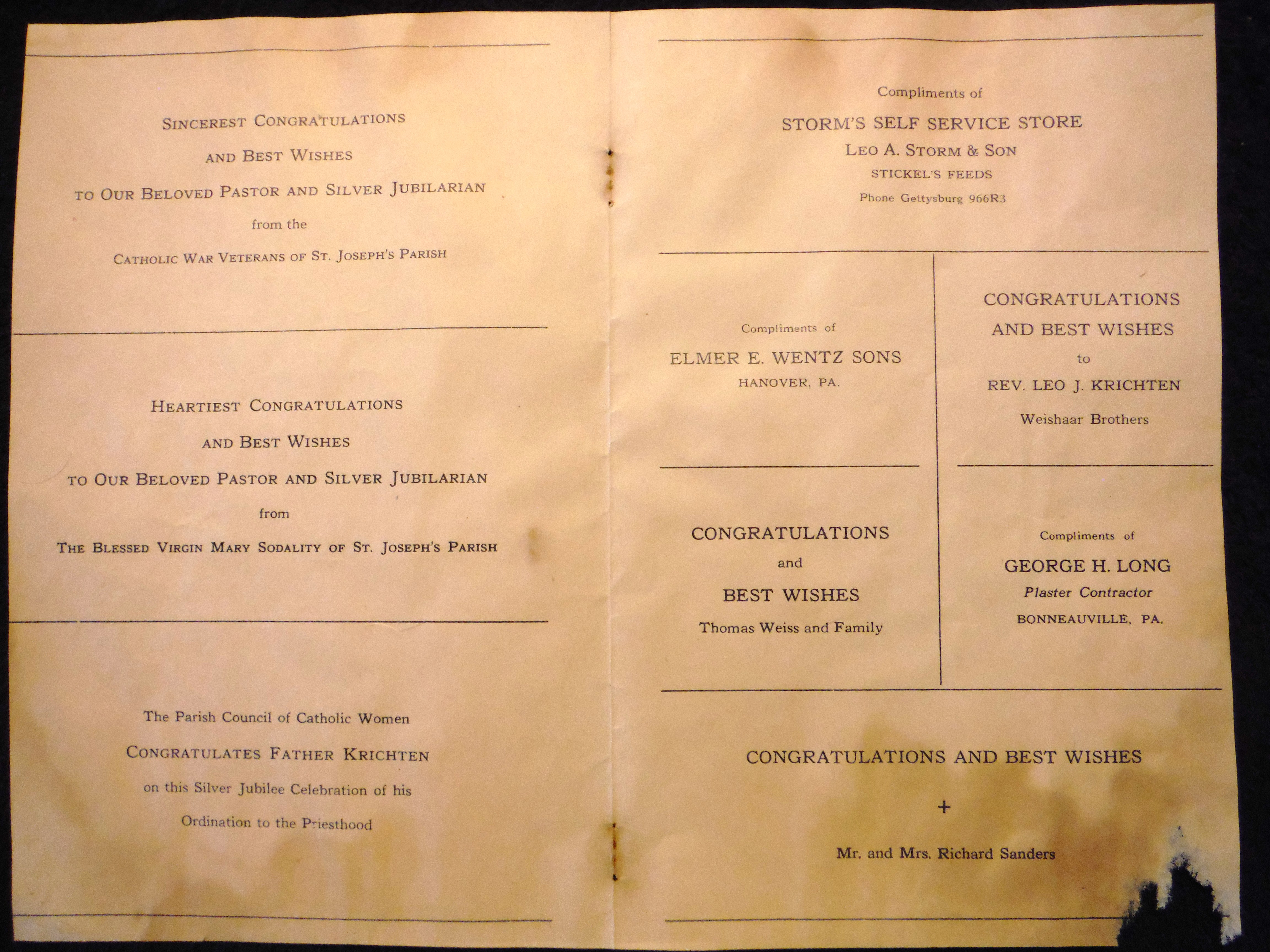 "As a tribute of deep respect we dedicate this booklet to Our Beloved pastor, the Reverand Leo J. Krichten on the occasion of his Silver Jubilee, May 26, 1948."