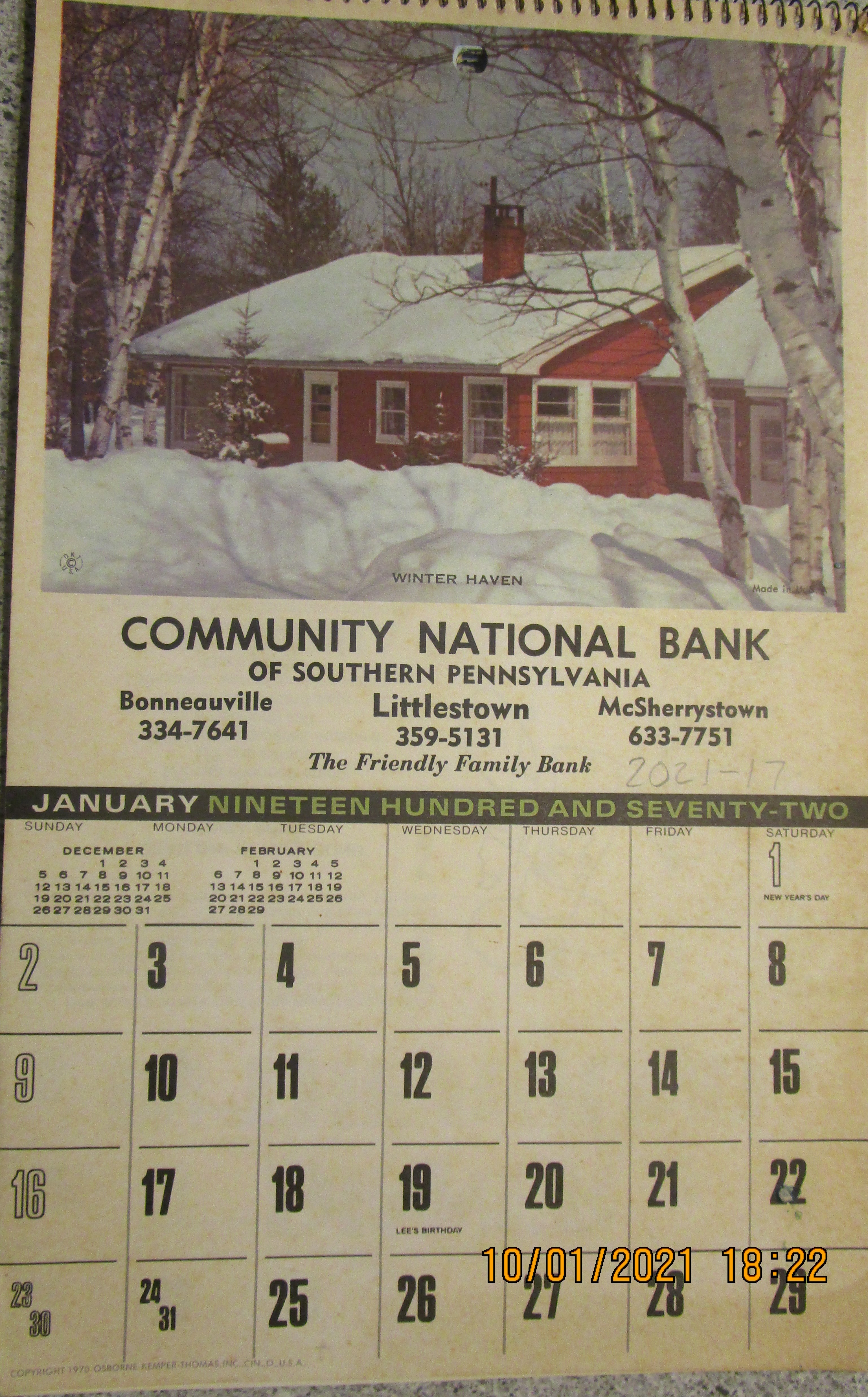 Community National Bank was located at 14 W. Hanover St. in Bonneauville, PA. Several banking institutions later occupied the building. The structure is presently (2021) occupied by Brothers Pizza.