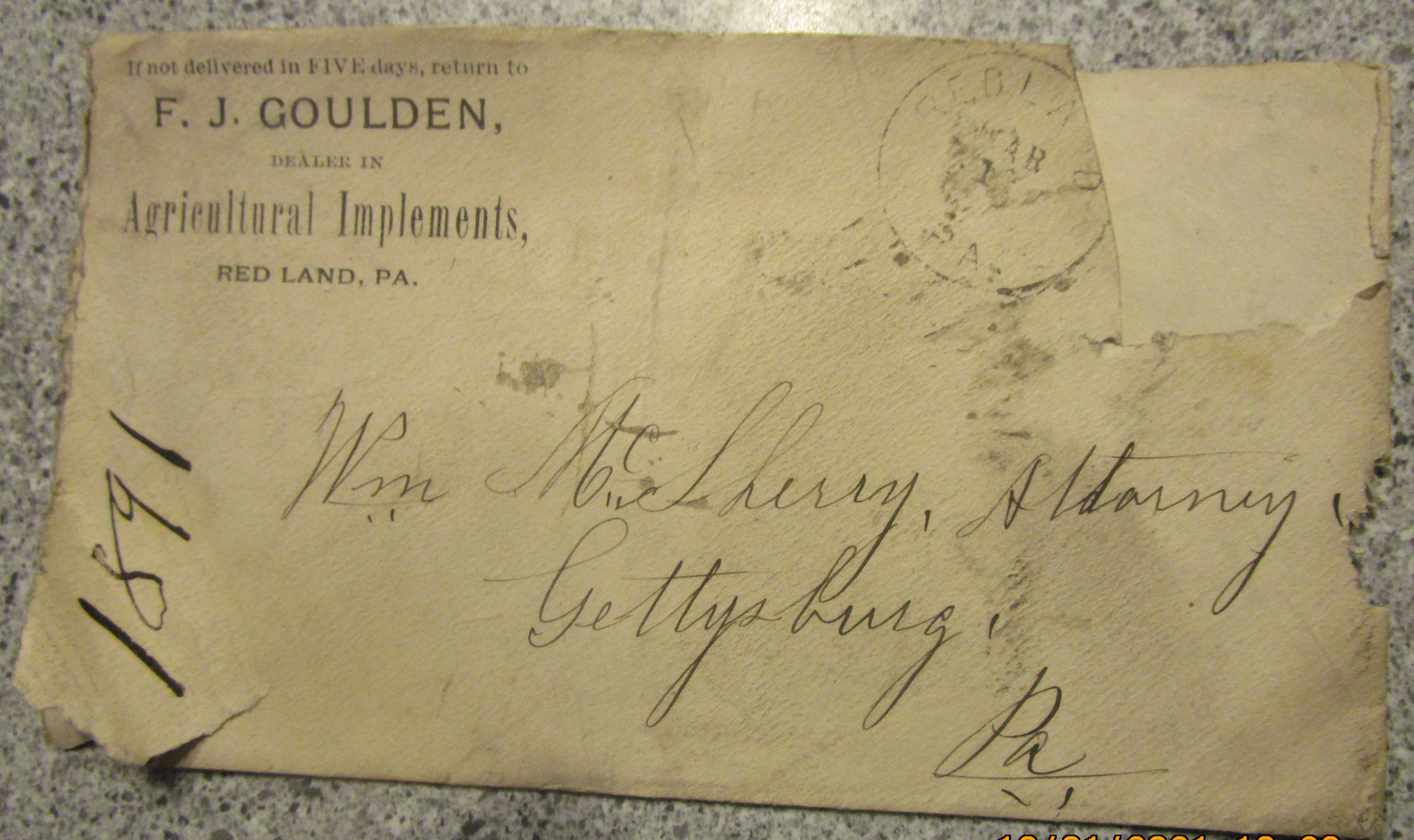 The addressee is: "Wm. McSherry, Attorney, Gettysburg, PA."
