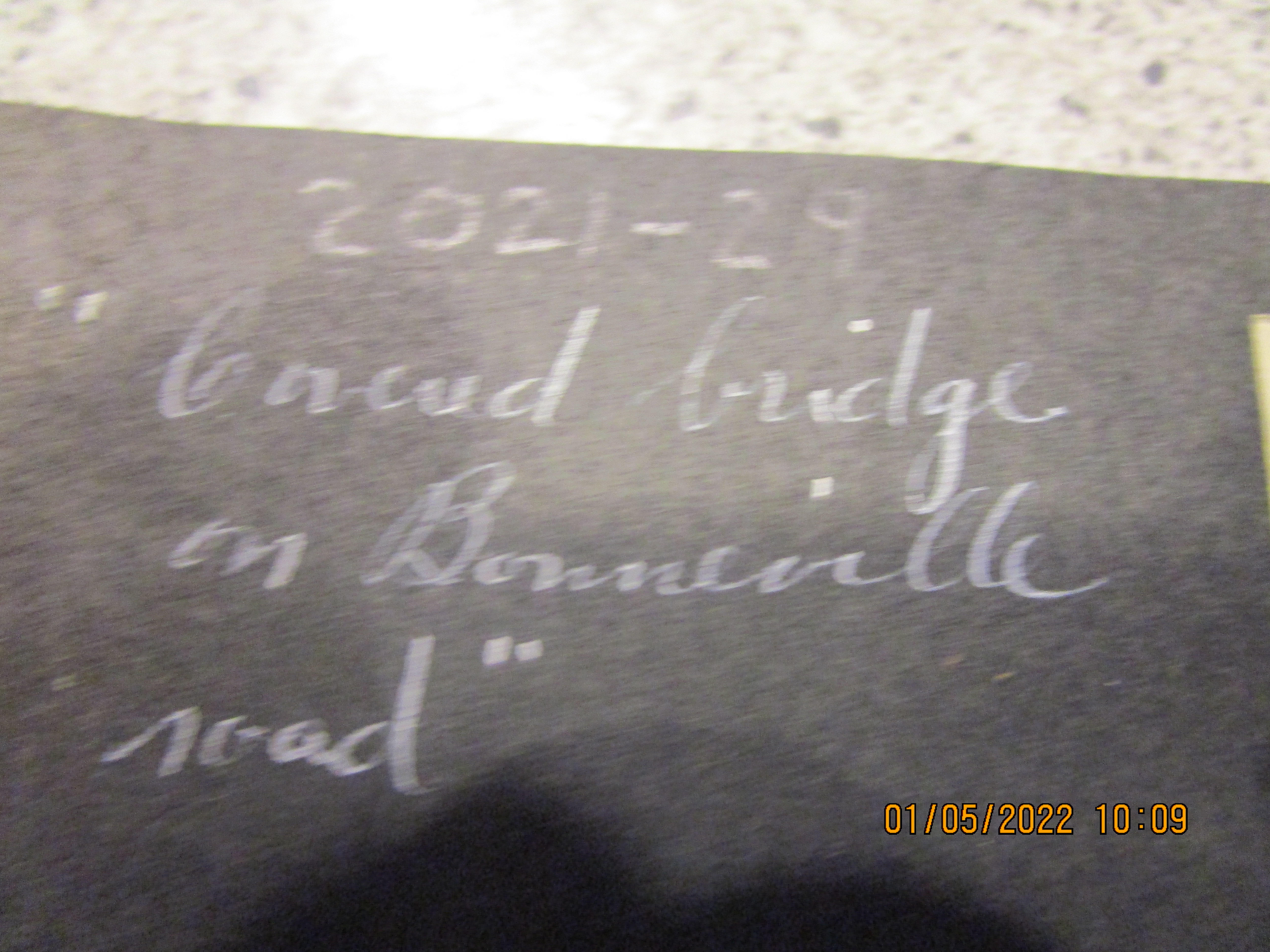 The western end of the bridge once wore the hand painted wooden sign: "Bonneauville Bridge". Catalog No. 2019-21 contains a photograph and text regarding the subject.