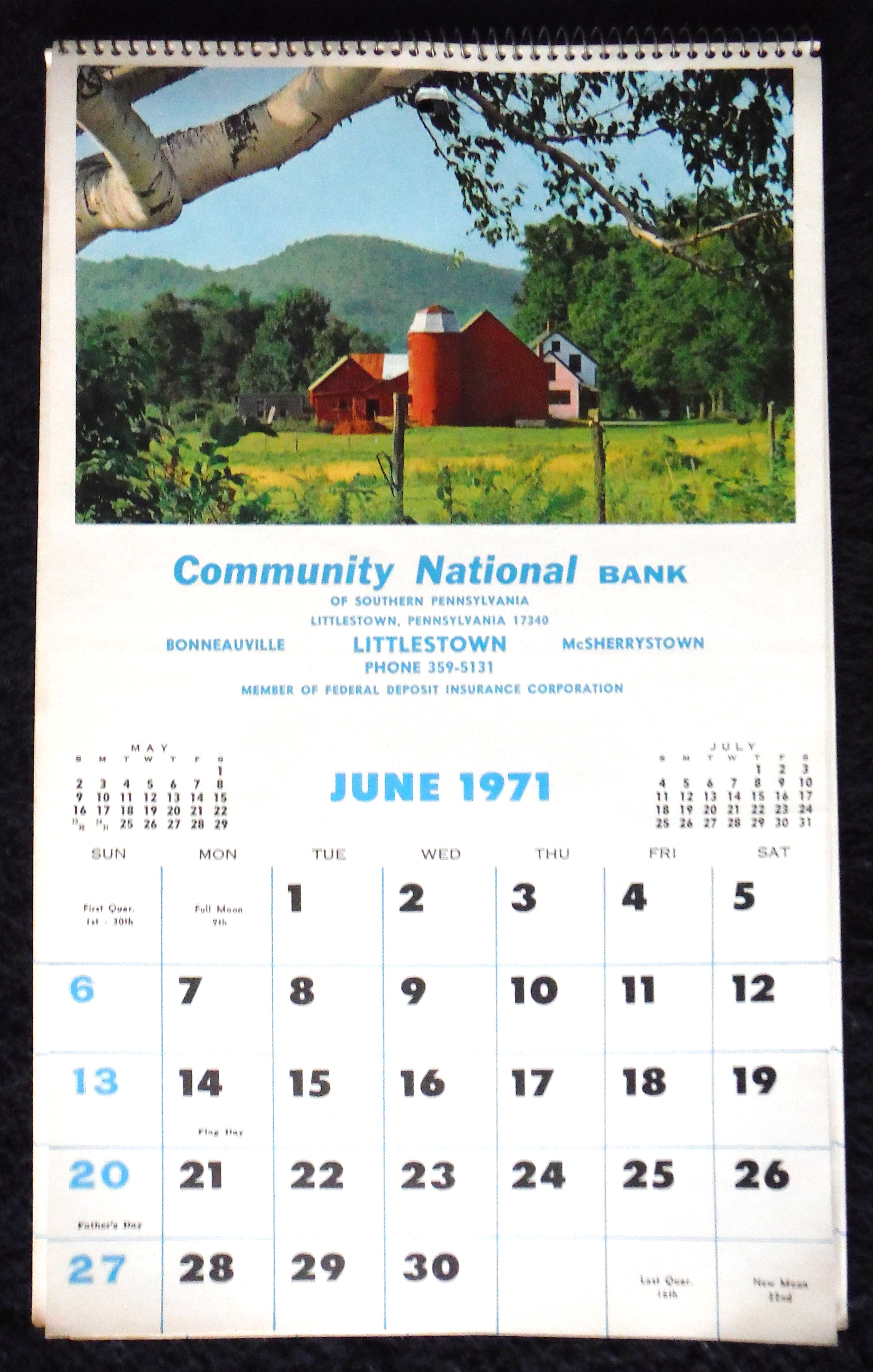 Calendar; 1971, Community National Bank, Bonneauville, PA